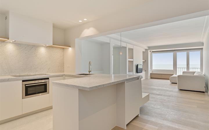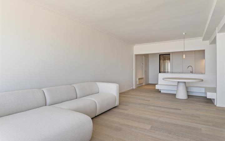 Appartement totalement rénové, bénéficiant d'une situation unique avec belle vue sur la plage et la mer au coeur du Zoute, à la place Albert et tout près des magasins luxueux. Composition: hall d'entrée avec vestiaire et wc. Magnifique séjour / coin à manger avec vue mer. Cuisine ouverte. 3 chambres à coucher dont 2 ouvrant sur terrasse. 1 salle de bains. 2 salles de douche. Visites volontier après rendez-vous en un de nos bureaux... A saisir!