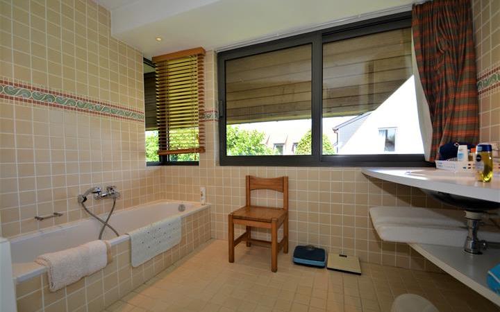Villa spacieuse située dans un quartier paisible à l’orée du Zoute... Entrée avec vestiaire et wc. Grand séjour-salle à manger ouvrant sur la terrasse et le jardin. Deuxième salon / salle de télévision. Grande cuisine avec coin à déjeuner et vue sur le jardin. Débarras/buanderie pratique. Nouvelle installation au gaz. A l’étage : 1 chambre à coucher avec dressing et salle de bains complète (bain, douche, double lavabo, toilette) et donnant sur grande terrasse ensoleillée. 2ème , 3ème et 4ème chambre à coucher avec chacune sa propre salle de douche. 5ème chambre à coucher avec lavabo. Salle de bains, toilette et débarras sur le hall de nuit. Grand grenier avec beaucoup de possibilités.