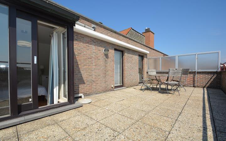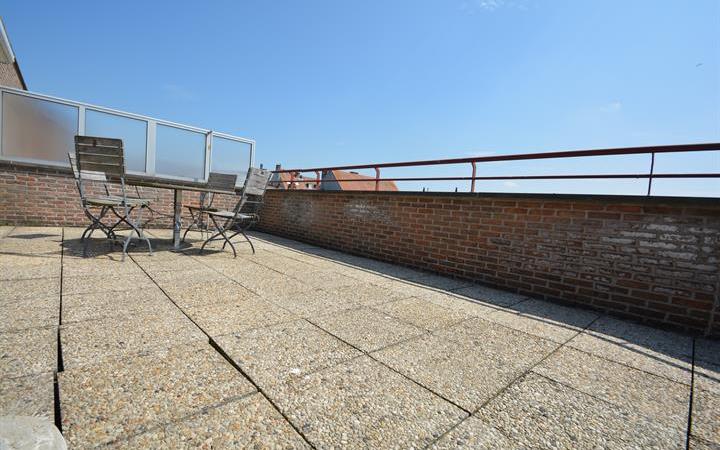 Duplex-penthouse à quelques pas de la plage et la mer. Composition: Vaste séjour et salle à manger ouvrant sur terrasse ensoleillée. Cuisine pratique, bien équipée. Chambre à coucher bien proportionnée. Salle de bains et toilette. 2ème étage: Chambre à coucher lumineuse. Salle de douche. Très grande terrasse ensolleilée de +/- 40m². Toilette et buanderie. Possibilité d'achat d'un garage. Confort à un souffle de la plage...