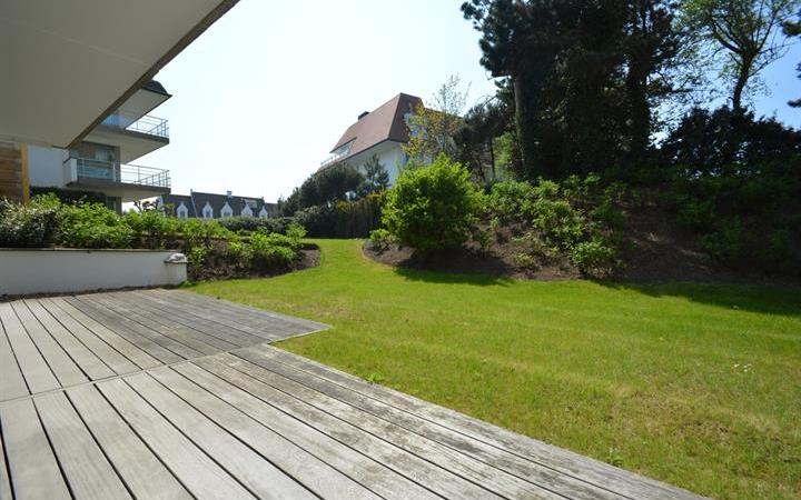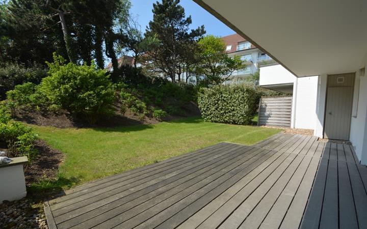 Appartement exceptionnel (casco) au rez-de-chaussée d’une résidence de standing, à quelques pas de la digue piétonne, du club de voile et le Zwin. Composition: hall d'entrée avec vestiaire et toilette. Salle de douche. Séjour avec de grandes baies vitrées donnant sur terrasse et jardin, orientés Sud-Ouest. Cuisine Américaine. 1 chambre à coucher et 1 salle de bains. Box fermé pour 1 voiture COMPRIS et cave dans la résidence. Concierge: sécurité maximale. Local à vélos dans la résidence. A saisir! Visites volontiers après rendez-vous en un de nos bureaux.