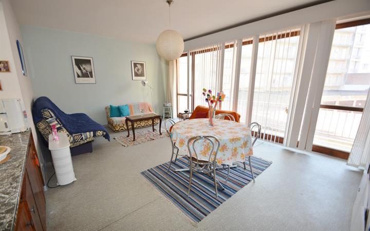 Studio bien situé au deuxième étage d'un immeuble de standing, à deux pas de la plage et de la mer. Composition : hall d'entrée avec vestiaire et toilette. Living avec porte-fenêtre donnant sur la terrasse. Coin à dormir. Cuisine ouverte, bien équipée. Salle de bains avec douche et lavabo, cave et garage. Résidence "Le Rallye" : un pied-à-terre bien situé. Visites volontiers après rendez-vous en nos bureaux.