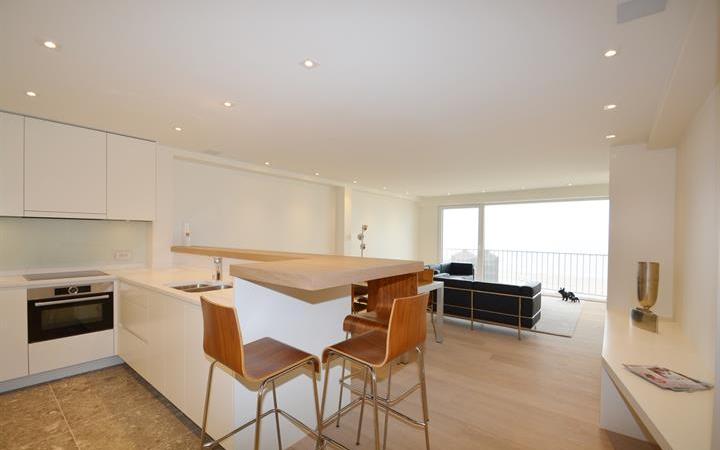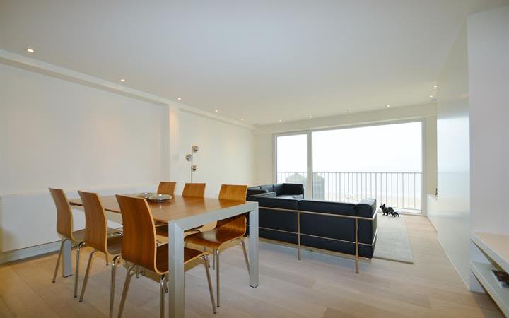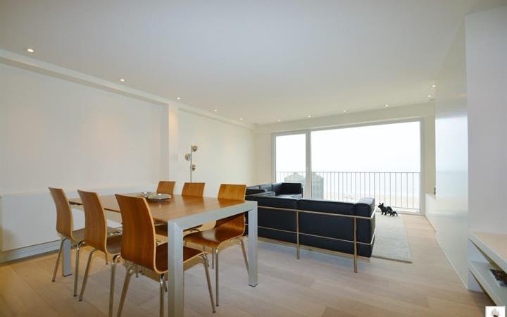 Appartement luxueusement rénové avec beaucoup de goût dans une petite résidence sur la digue du Zoute. Situation idéale entre la Place Albert et la digue piétonne. Composition: entrée avec vestiaire et toilette. Agréable séjour-salle à manger avec vue panoramique sur la plage et la mer. Cuisine ouverte bien équipée. Débarras utile. Chambre principale avec sa propre salle de bains. Seconde chambre à coucher. Salle de douche complète. Terrasse au sud. Possibilité d'achat d'un garage dans les environs immédiats. Visites volontiers après rendez-vous en un de nos bureaux. A saisir...!