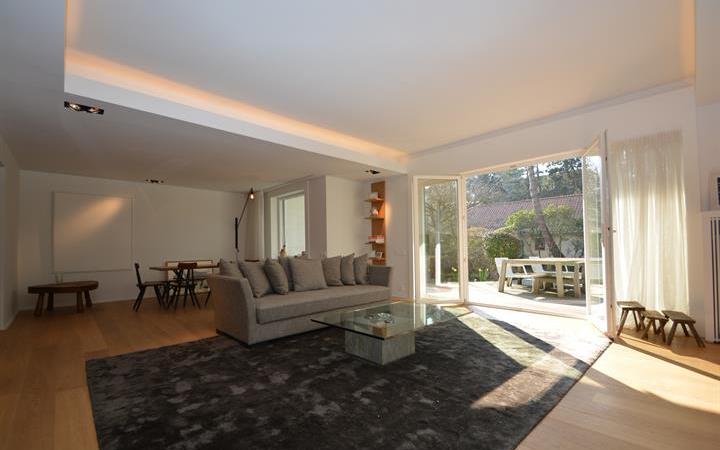 Splendide appartement avec une belle terrasse et un grand jardin privatif dans une villa-résidence de standing au coeur du Zoute, près du Royal Zoute Golf Club. Composition : grand hall d'entrée avec vestiaire et toilette. Spacieux living/salle à manger avec feu ouvert, ouvrant sur la terrasse et le jardin privatif orienté plein sud. Master bedroom avec salle de bains. 2 Chambres à coucher spacieuses avec salle de douche. Quatrième chambre à coucher/bureau. L'appartement doit être rénové. Grand box de garage dans la résidence et possibilité de deux emplacements extérieurs. Le garage est accessible par le jardin. Au souterrain se trouve une grande cave privative avec cave à vins. Cet appartement offre une possibilité d'extension unique en intégrant une partie des parties privatives du souterrain (habitation de concierge). Le "Clydale" : le confort et plein de possibilités à une situation magnifique au coeur du Zoute. Visites volontiers après rendez-vous en l'un de nos bureaux.
