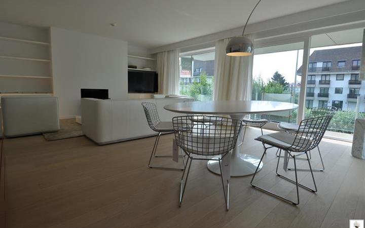 Luxueux appartement de coin avec terrasses ensoleillées dans une petite résidence prestigieuse, nichée dans un quartier résidentiel à deux pas de la digue piétonne au Zoute. Composition : entrée avec vestiaire et toilette. Spacieux séjour et salle à manger très lumineux avec de larges baies vitrées donnant sur belle terrasse de coin. Cuisine moderne équipée de Bulltaup. 2 belles chambres à coucher avec terrasses et vue mer et salles de bains atténantes. Box pour 1 voiture dans la résidence. Cave privative et local à vélos commun. Concierge: sécurité optimale. Visites volontiers sur rendez-vous dans nos bureaux.