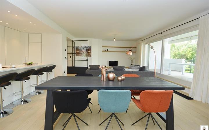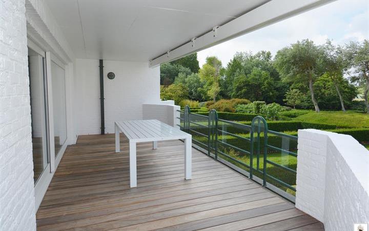 Appartement d'angle rare, avec 9m de façade, dans une résidence de grand standing au coeur du Zoute, dans le domaine très exclusif "Tennis Gardens" - un parc privé de +/- 5 ha, à un souffle de la plage et du "Royal Zoute Tennis Club". Le domaine comporte une piscine couverte chauffée, exlusivement pour les habitants du domaine. Composition : hall avec vestiaire et toilet. Grand et agréable salon avec fenêtres coulissantes ouvrant sur grande terrasse (sud) et avec vue sur le jardin du domaine. Cuisine ouverte, équipée de tous les appareils ménagers. 3 chambres à coucher. Salle de bains et deux salles de douche pratiques. Possibilité d'acheter un garage pour 2 voitures dans le souterrain de la résidence. Local à vélos. Concierge : sécurité optimale. l"Eastgreen" : luxe et la tranquillité à un des plus belles situations du Zoute. Visites volontiers sur rendez-vous dans nos bureaux.