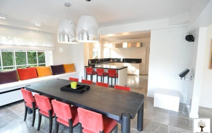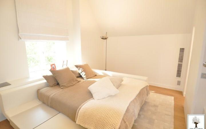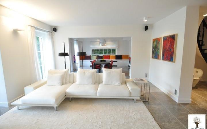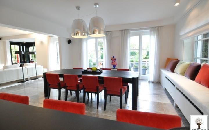 Villa d'exception sur un terrain de 1200 m2 magnifiquement située dans un petit sentier au centre du Zoute adeux pas de l'église des pères Dominicains et le "Royal Zoute Golf Club". Composition: hall d'entrée avec vestiaire et wc. Vaste séjour, salle à manger et cuisine Américaine (Bulthaup) donnant sur terrasse chauffée et jardin clôturé. Grand débarras avec beucoup d'armoires encastrées, armoire à vin. Premier étage: Master bedroom avec dressing et salle de bains luxueuse. 2 grandes chambres à coucher avec salle de bains attenant. Deuxième étage: impressionnant chambre/salon et salle de bains moderne. Finitions extrêmement raffinée: plancher en chaîne, installation musique B&O, domotique... Le jardin a été superbement aménagé par l'architecte de jardin renommé: Ludo Dierckx. Pavillion de jardin avec sauna, douche et salle de massage. Une propriété absolument hors-paire...