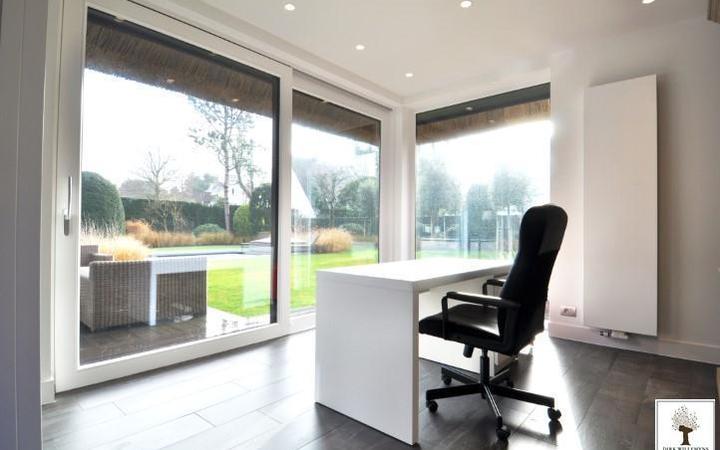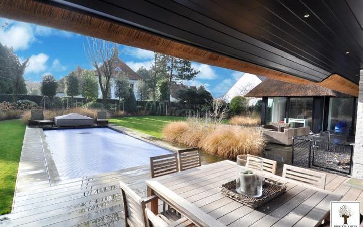 Epoustoufflante villa au toit de chaume sise sur un terrain de 1177 m². Le magnifique jardin est orienté plein sud. Composition : entrée avec vestiaire. Living très spacieux donnant sur une terrasse avec vue sur le jardin avec piscine. Cuisine avec coin à déjeuner, office et terrasse attenante. Chambre de bonne avec salle de douche. 4 Chambres à coucher bien proportionnées, chacune avec salle de bains luxueuse. Dressing. Buanderie séparée. Garage avec débarras. 2 Emplacements extérieurs. Plus d'informations volontiers en nos bureaux.