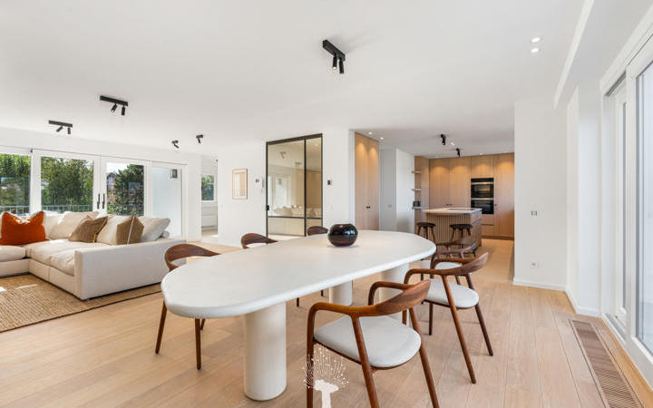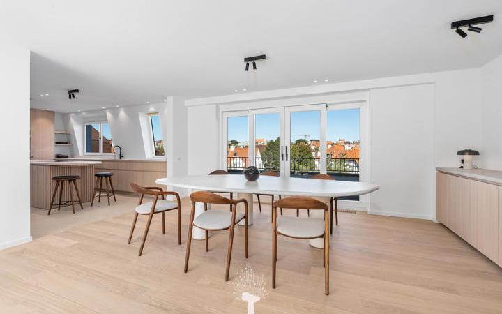 Penthouse très luxueux avec 4 terrasses, situé dans une petite villa résidence, à quelques pas de l'église des Pères Dominicains et du "Royal Zoute Golf Club"... L'appartement a été rénové totalement et dispose d'une superbe terrasse avec vue sur les jardins et les villas du Zoute! Deuxième terrasse avec vue sur l'avenue Prince Charles. Composition: hall d'entrée avec vestiaire et wc. Spacieux séjour avec feu ouvert au gaz et salle à manger lumineuse avec belle vue dégagée sur la verdure et les villas du Zoute. Cuisine entièrement équipée avec tous les appareils (Miele). 3 grandes chambres à coucher avec beaucoup d'armoires encastrées pratiques et salle de douche . La chambre principale a une salle de bains complète avec baignoire, douche à l'italienne, double lavabo et toilette. Dressing. Cave et cave à vins. Emplacement de voiture dans la résidence. Possibilité d'achat d'un deuxième emplacement dans la résidence. Visites volontiers après rendez-vous en nos bureaux. A saisir!