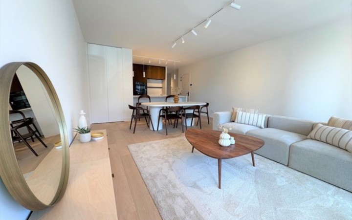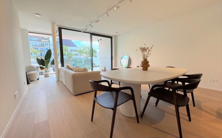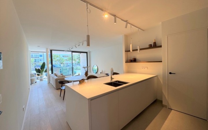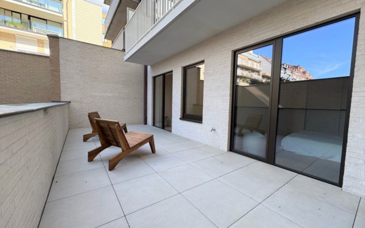 Appartement de luxe au réz-de-chaussée du nouveau projet « South View ». Composition. Hall d’entrée, vestiaire et wc. Vaste séjour avec terrasse orientée au Sud. Cuisine américaine bien équipée. 3 Chambres à coucher, salle de bains et salle de douche. Débarras/buanderie. 2ème terrasse à l’arrière de la résidence. Local à vélos commun. La résidence South View se trouve au Abrahams Hansplein à courte distance de la mer, l’avenue Lippens, Zegemeer et le Casino. Visites volontiers après rendez-vous en un de nos bureaux.