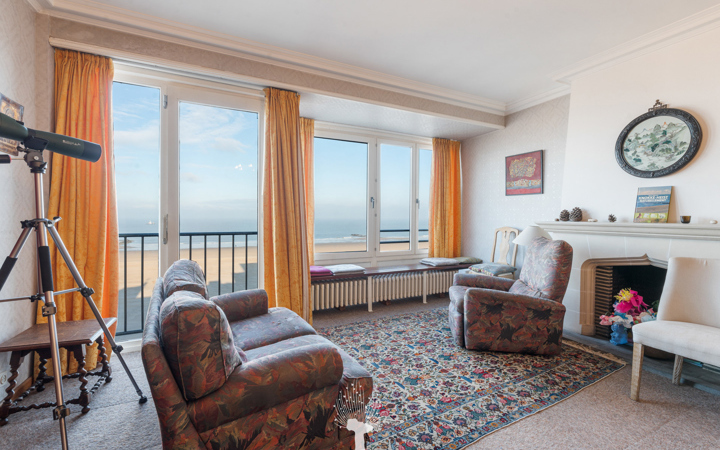 Appartement spacieux situé sur la digue au Zoute entre la Place Albert et le Minigolf. Composition: hall d'entrée avec vestiaire et toilette. Agréable séjour en parquet (feu ouvert) donnant sur la plage et la mer. Cuisine bien équipée. Master bedroom donnant sur la terrasse arrière. Salle de bains. Deuxième chambre à coucher avec beaucoup de rangements. Troisième chambre à coucher, plus petit, avec lavabo. 1 salle de douche. Cave privée et local à vélos. Possibilité d'achat d'un garage dans les environs immédiats. Visites volontiers après rendez-vous dans nos bureaux.