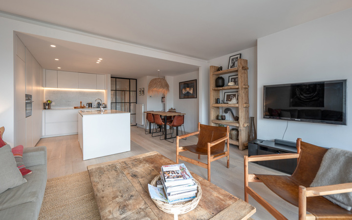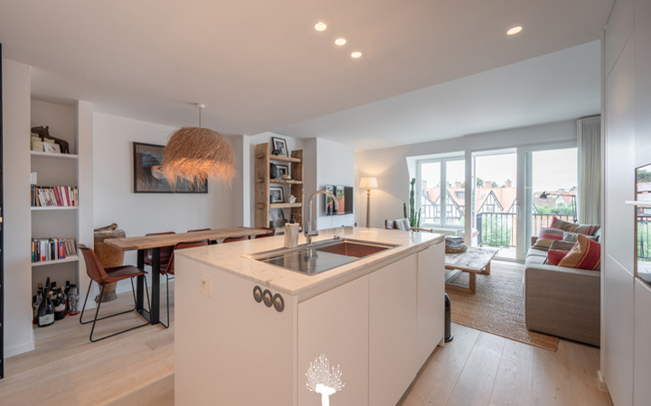 Appartement entièrement rénové de bon goût, dans une villa-résidence de standing au centre commercial du Zoute, près du minigolf et à quelques pas seulement de la mer. Composition : hall d'entrée avec vestiaire. Agréable séjour avec de grandes portes-fenêtres ouvrant sur terrasse ensoleillée et vue dégagée sur les villas. Cuisine américaine moderne entièrement équipée. 1 grande chambre à coucher avec armoires encastrées pratiques et salle de douche attenante avec wc. 2ème chambre à coucher. Salle de douche séparée. Wc et buanderie. Cave privée dans la résidence. Possibilité d'achat d'un emplacement de voiture dans la résidence. Visites volontiers après rendez-vous en un de nos bureaux. A saisir!