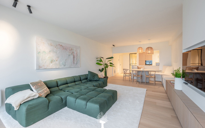 Appartement totalement rénové, bénéficiant d'une situation unique avec belle vue sur la plage et la mer au coeur du Zoute, à la place Albert et tout près des magasins luxueux. Composition: hall d'entrée avec vestiaire et wc. Magnifique séjour / coin à manger avec vue mer. Cuisine ouverte. 3 chambres à coucher dont 2 ouvrant sur terrasse. 1 salle de bains. 2 salles de douche. Visites volontier après rendez-vous en un de nos bureaux... A saisir!