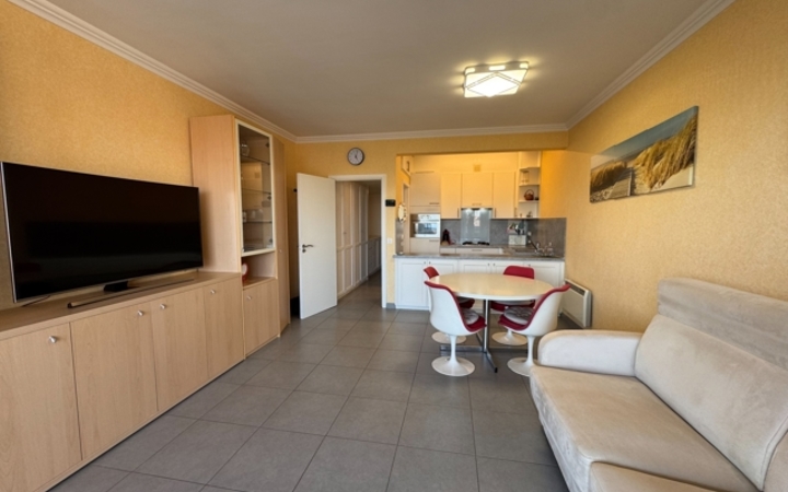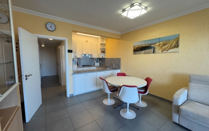 A VENDRE EXCLUSIF CHEZ DIRK WILLEMYNS - Studio bien situé au troisième étage d'un immeuble de standing, à deux pas de la plage et de la mer. Composition: hall d'entrée avec vestiaire et toilette. Living avec porte-fenêtre donnant sur terrasse. Cuisine ouverte. Salle de bains avec douche et lavabo. Cave et local à vélos dans la résidence. "Le Rallye": un pied-à-terre bien situé. Visites volontiers après rendez-vous en un de nos bureaux..