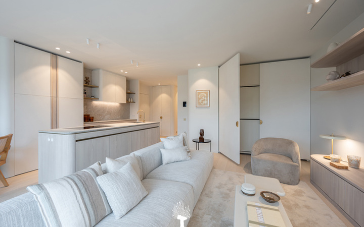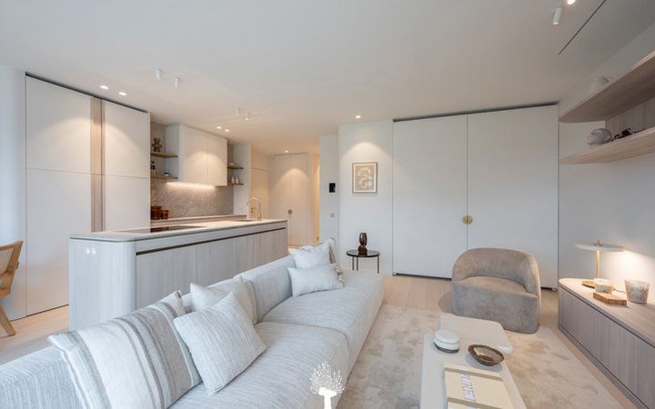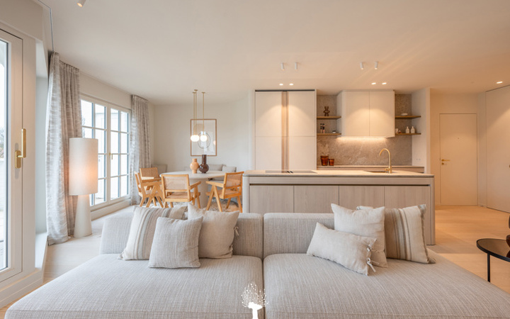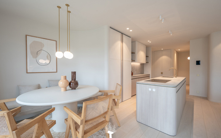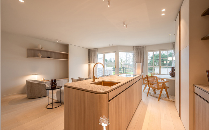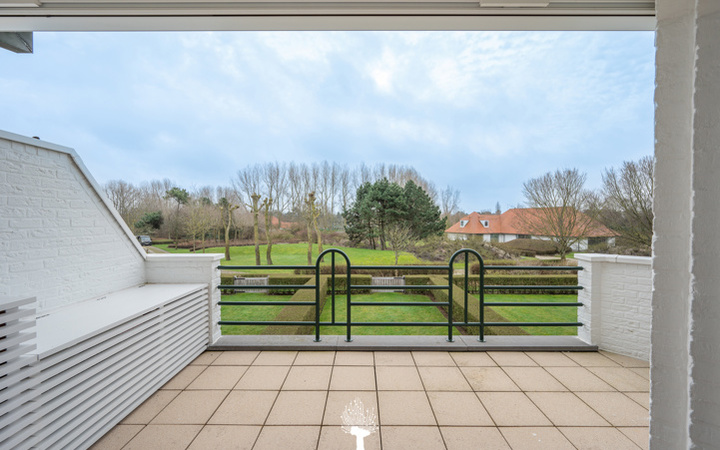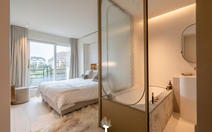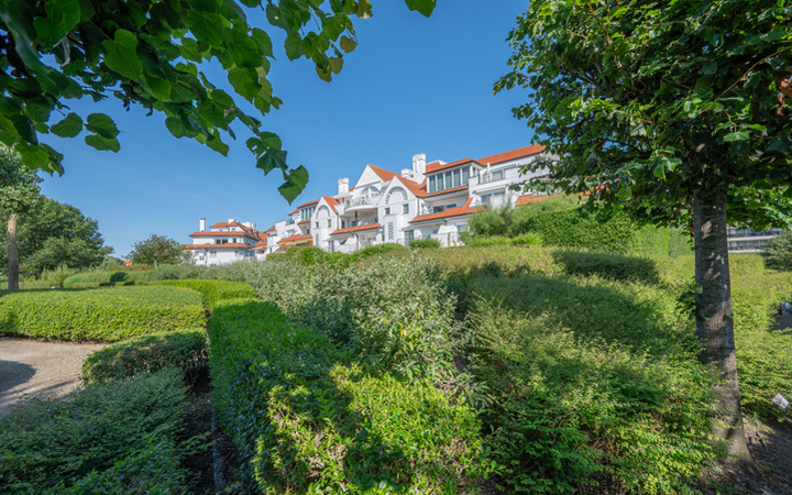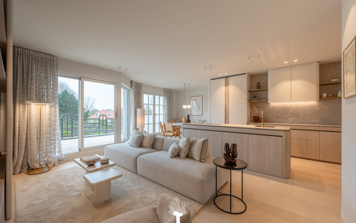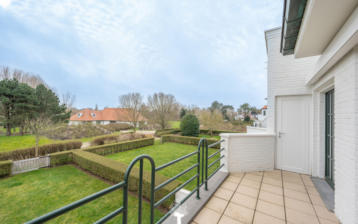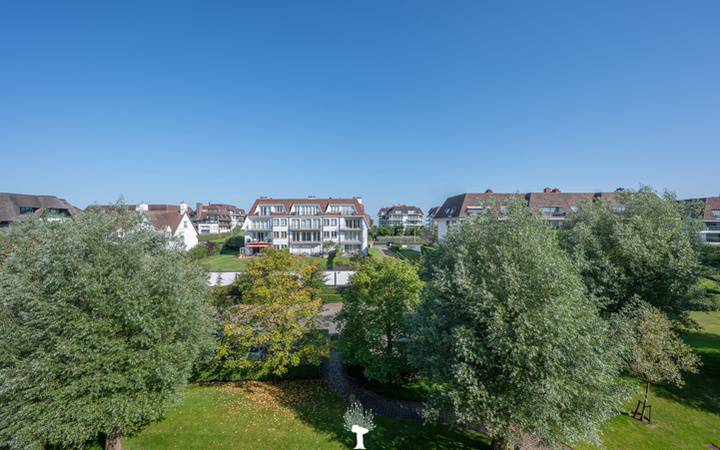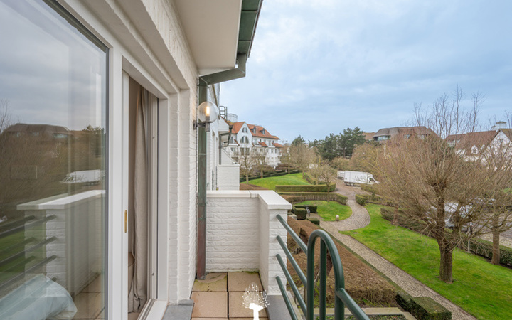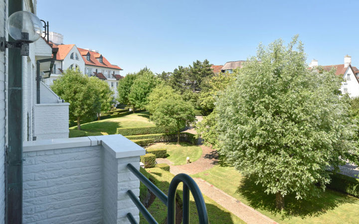 Appartement exceptionnel entièrement rénové dans une résidence de grand standing au coeur du Zoute, dans le domaine exclusif "Tennis Gardens" - un parc privé de +/- 5 ha- à un souffle de la plage et du "Royal Zoute Tennis Club". Le domaine dispose d’une piscine couverte chauffée, exclusivement à la disposition des habitants du domaine. Composition : hall d’entrée avec vestiaire et wc. Vaste séjour s’ouvrant sur une belle terrasse ensoleillée orientée sud, vue dégagée sur le parc et débarras pratique. Cuisine américaine entièrement équipée. 1ère chambre à coucher avec terrasse, armoires encastrées et salle de bains luxueuse attenante (bain, douche, double lavabo, wc). 2ème chambre à coucher avec armoires encastrées. Salle de douche séparée (douche, lavabo). Lits superposés parfaitement intégrés dans une armoire au living. Débarras pratique avec raccordement pour lave-linge/séchoir. Cave privé. Local à vélos commun. Concierge : service et sécurité optimale. Plusieurs emplacements de voiture extérieurs pour les visiteurs. Possibilité d’achat d’un emplacement de voiture dans la résidence. Visites volontiers après rendez-vous en un de nos bureaux.