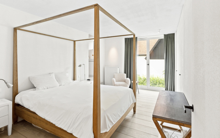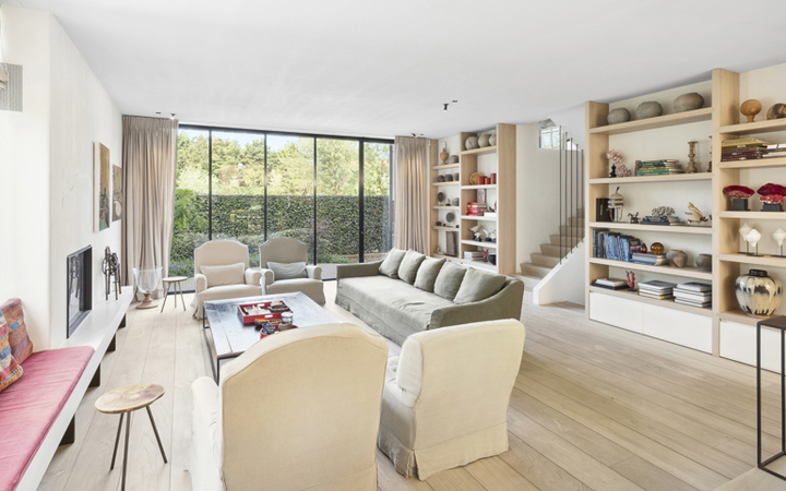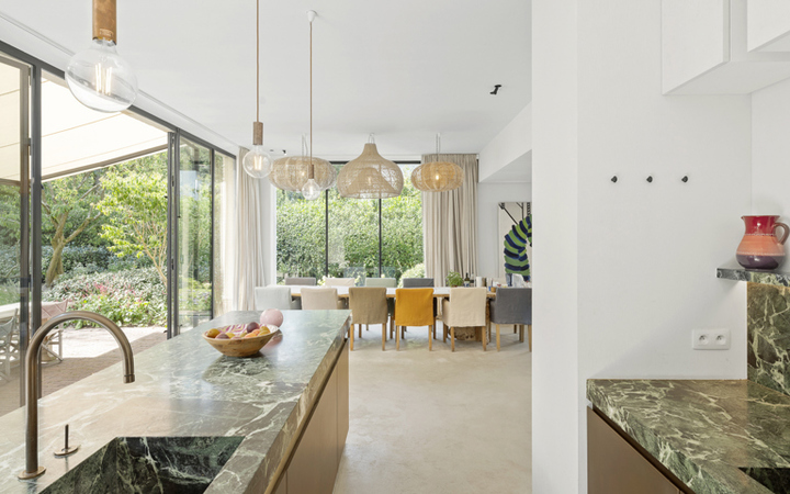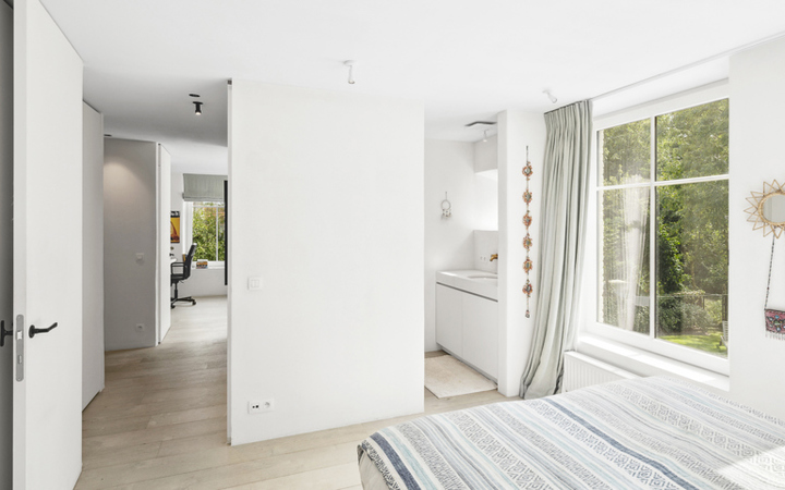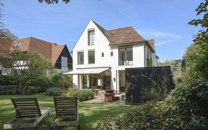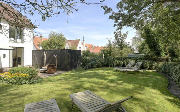 Villa récente, située au calme dans la verdure, à proximité immédiate du Zwin et de l'Oosthoekplein. Composition: hall d’entrée, vestiaire et wc. Grand séjour lumineux avec hauts plafonds et feu ouvert au gaz. Cuisine américaine entièrement équipée et magnifique samme à manger. Arrière cuisine spacieuse avec raccordement pour lave-linge et sèche-linge. Jardin ensoleillé avec terrasse. Abri de jardin pour es vélos. Mezzanine avec bureau séparé et salle de télévision. Au 1er étage : 4 belles chambres à coucher chacune avec salle de douche et armoires encastrées. WC. Mezzanine : 5ème chambre complète. Sauna infrarouge. WC. Local technique. Au 2ème étage : chambre principale, avec grand dressing et salle de bains luxueuse (baignoire, douche, 2 lavabos séparés). Débarras. Villa unique en bordure de forêt.La villa est très qualitative et finie avec goût avec des matériaux de haute qualité. Parking extérieur pour 4 voitures. Visites volontiers après rendez-vous en un de nos bureaux.