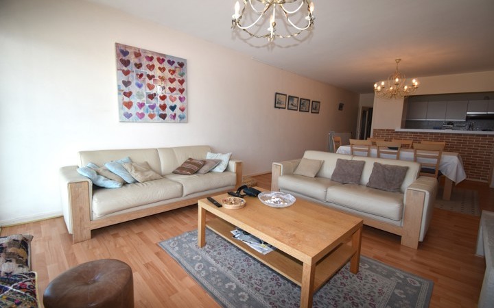 Appartement meublé de trois chambres avec vue frontale sur la mer près de la place de Phare. Composition: hall d'entrée avec vestiaire et wc. Agréable salon avec coin repas et terrasse. Cuisine semi-ouverte installée. Deux chambres spacieuses avec salle de bain et troisième chambre avec lits superposés. Terrasse exposée plein sud accessible par les chambres. Debarras. Local à vélos dans la résidence. Provision pour charges communes, chauffage et eau 150 € par mois. Visites volontiers après rendez-vous dans nos bureaux.