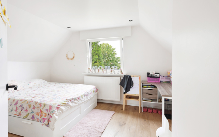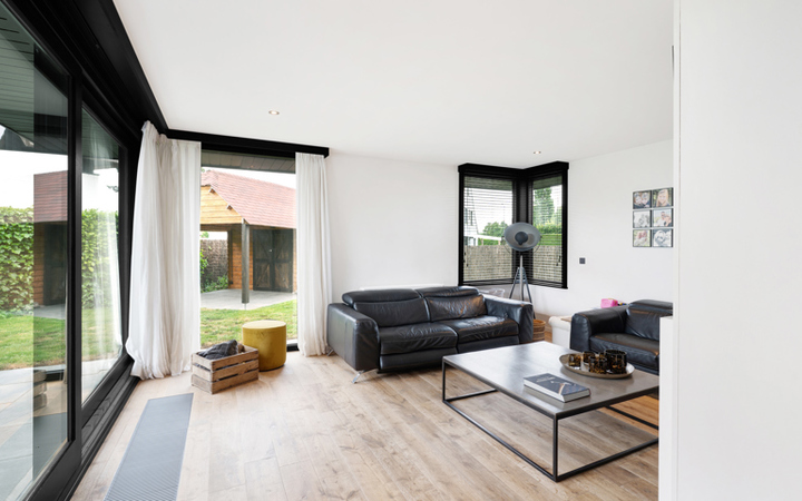 Composition : hall d'entrée avec vestiaire et toilettes. Très spacieux et lumineux séjour avec cheminée. Salle à manger donnant sur la terrasse et le jardin. Cuisine ouverte luxueusement équipée avec îlot central et tous les appareils électroménagers modernes. Buanderie/arrière-cuisine. Garage pour une voiture avec porte automatique. Parking extérieur. À l'étage : suite parentale avec dressing et baignoire indépendante. Deux chambres à coucher complètes. Grande salle de douche avec toilettes. Terrasse et jardin orientés sud-ouest. Visites volontiers après rendez-vous en un de nos bureaux.
