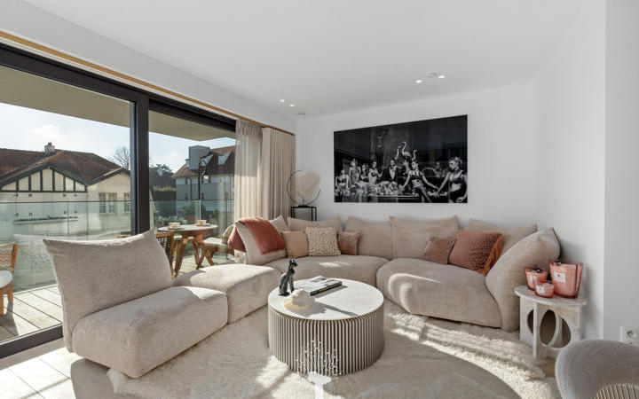 Appartement meublé dans une nouvelle résidence jouissant de finitions luxueuses, situé sur l'Avenue du Littoral, au cœur du Zoute et à quelques pas de la plage et la mer. Composition: hall d'entrée avec vestiaire et toilette. Séjour tres spacieux donnant sur agréable terrasse orientée plein sud avec vue dégagée sur les villas du Zoute. Cuisine Américaine équipée de tous les appareils ménagers. Chambre principale avec salle de douche attenante. 2ème chambre à coucher avec salle de douche. Cave. Finitions luxueuses : marbre "Oyster white", ... Possibilité de reprendre un contrat de location d'un garage. Visites après rendez-vous en un de nos bureaux. A saisir!