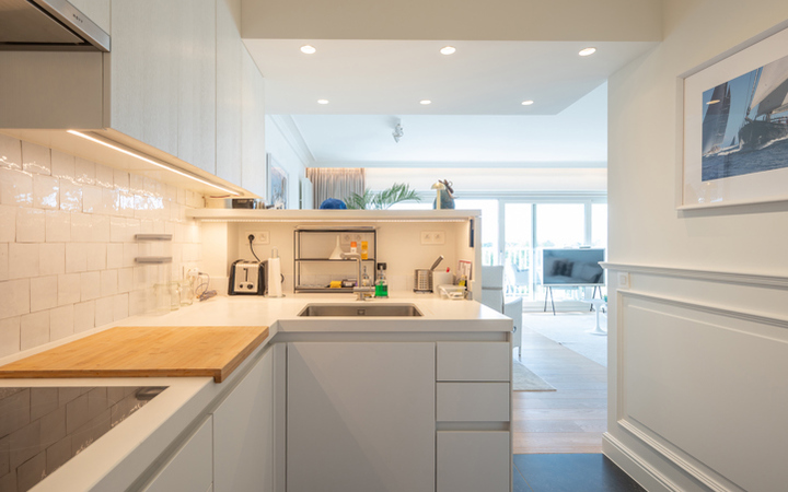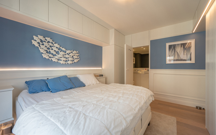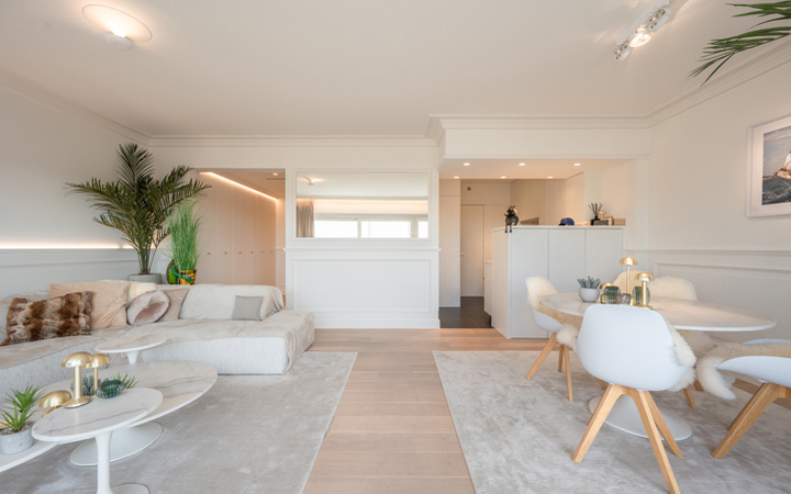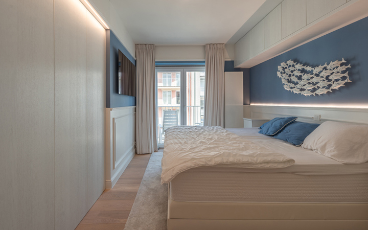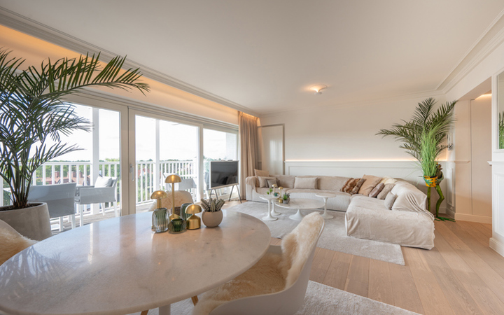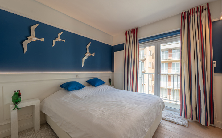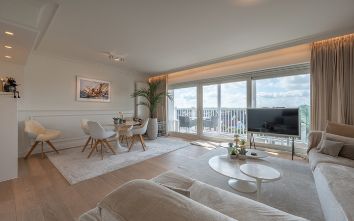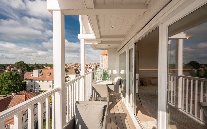 Appartement luxueux, meublé de très bon goût, dans une petite résidence récente, idéalement situé entre le minigolf et la Place Albert. Composition : entrée avec vestiaire et wc. Agréable séjour avec coin repas (lambris mural avec éclairage LED)et grandes baies vitrées donnant accès à une belle terrasse orientée sud avec magnifique vue sur les villas du Zoute. Cuisine américaine entièrement équipée. Débarras pour lave-linge et sechoir. 2 chambres à coucher avec armoires encastrées et ouvrant sur deuxième terrasse. 1 salle de bains complète (baignoire, double lavabo et wc). 1 Salle de douche pratique. L’appartement est équipé de climatisation. Cave privée. 150€ provision par mois pour le frais généraux. Possibilité de louer un garage à proximité immédiate. Visites volontiers après rendez-vous en nos bureaux.