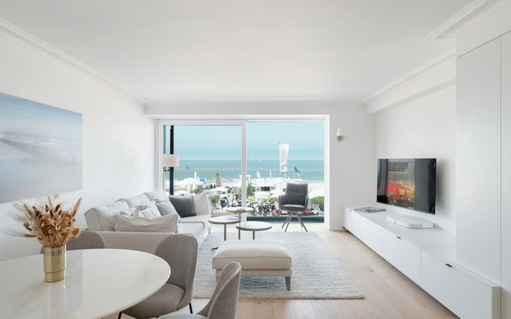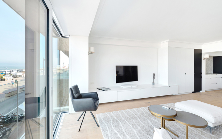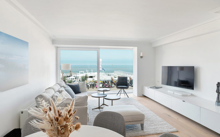 Bel appartement récement rénové avec vue mer frontale, situé sur la digue de Knokke dans une résidence de qualité près de la Place du Phare (Lichttorenplein). Composition : hall d'entrée avec vestiaire et wc. Cuisine américaine entièrement équipée . Living spacieux et lumineux avec belle vue frontale sur la plage et la mer. Débarras pratique pour lave-linge et séchoir. Chambre à coucher (lits superposés) avec placards et douche. Seconde chambre à coucher avec volumes de rangement et salle de douche. Agréable terrasse au soleil à l'arrière de la résidence. Cave privée. Possibilité d'achat d'un emplacement de voiture dans la résidence. La façade de la résidence "Egmont" vient d'être renouvelée. Visites volontiers après rendez-vous en un de nos bureaux.