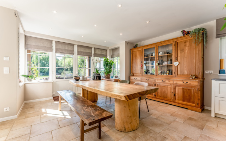 Propriété exceptionnelle, entièrement entourée de nature et offrant une tranquillité absolue. Dès que vous entrez sur le domaine, vous ressentez la sérénité et l’intimité qui rendent cet endroit si unique. Disposition : hall d’entrée avec vestiaire et toilettes invités. Spacieux séjour baigné de lumière. Cuisine ouverte entièrement équipée, finie avec des matériaux de haute qualité et dotée de tout le confort moderne. À côté, vous trouverez un débarras pratique, une buanderie et une pièce polyvalente avec douche à l’italienne — idéale comme salle de loisirs, bureau à domicile ou chambre d’amis supplémentaire. À l’extérieur, vous profitez d’une magnifique terrasse couverte orientée plein sud, d’une grande terrasse ouverte et d’un jardin paysager impressionnant, avec une variété de plantations soigneusement sélectionnées. Un véritable paradis pour les amoureux de calme et de nature.