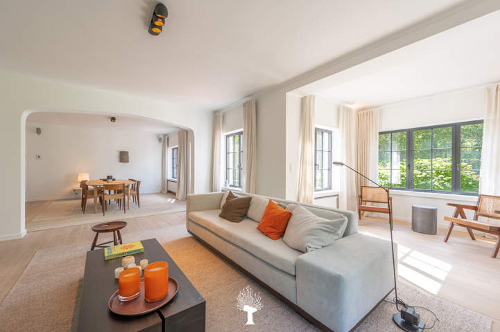 Villa entièrement rénovée avec magnifique jardin paysagé, discrètement nichée dans un sentie proche du "Royal Zoute Golf Club". Composition: hall d’entrée avec vestiaire et wc invités. Séjour lumineux, avec feu ouvert, donnant sur belle terrasse ensoleillée et superbe jardin aménagé. 2ème salon également avec feu ouvert. Cuisine entièrement équipée avec coin petit-déjeuner. Débarras. Au premier étage : chambre principale donnant sur grande terrasse avec salle de bains attenante (baignoire, double lavabo, douche, WC). 2ème et 3ème chambre à coucher, chacune avec douche privée. 4ème et 5ème chambre à coucher. Salle de bains (baignoire, double lavabo, WC). WC de nuit. Au second: grande chambre à coucher avec salle de bains attenante. Grenier pratique. Garage incorporé et plusieurs emplacements extérieurs. Cave. Jardin magnifiquement aménagé (Dominique Eeman) équipé d’un système d’arrosage automatique. Visite volontiers après rendez-vous en un de nos bureaux.