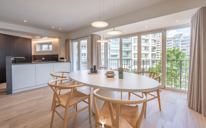 Appartement entièrement rénové dans une résidence avec beaucoup d'allure, prestigieusement située dans un environnement de jardins et de verdure, à deux pas de la Place Albert et de la mer. Composition : Hall, vestiaire et toilette. Agréable living orienté plein soleil et prolongé par une terrasse. Cuisine ouverte, équipée de tous les appareils ménagers. Chambre à coucher avec salle de bains attenante. Deuxième et troisième chambre à coucher avec salle de douche. Nombreux volumes de rangement et achèvement raffiné. Harmonie et confort total! Visites volontiers après rendez-vous dans nos bureaux.