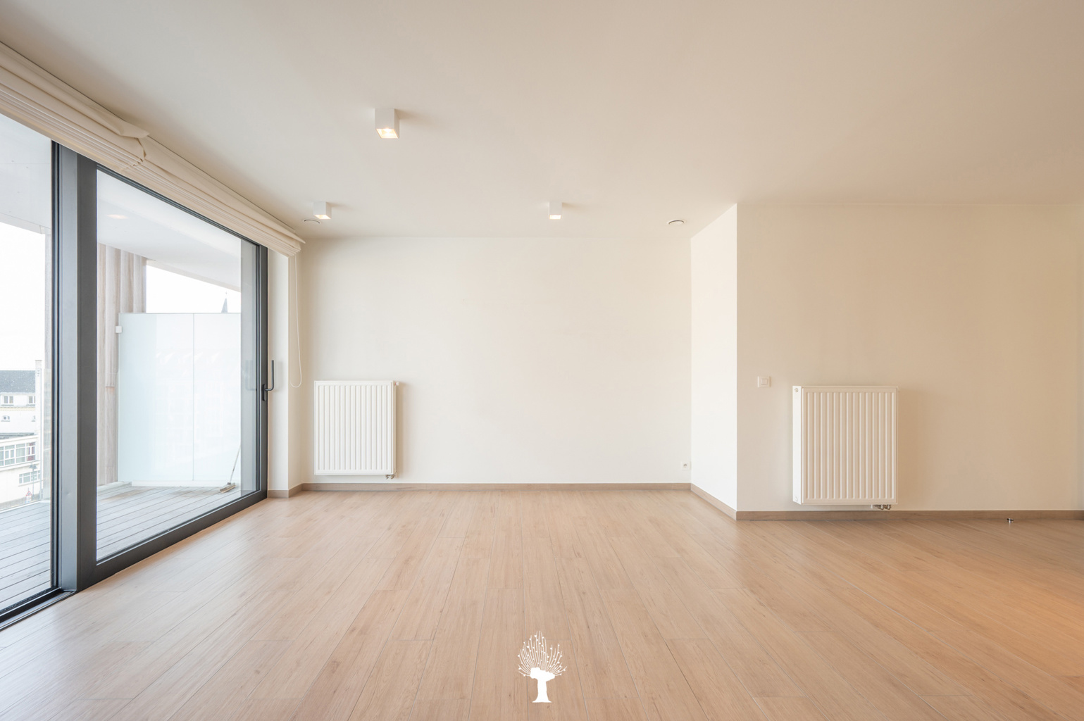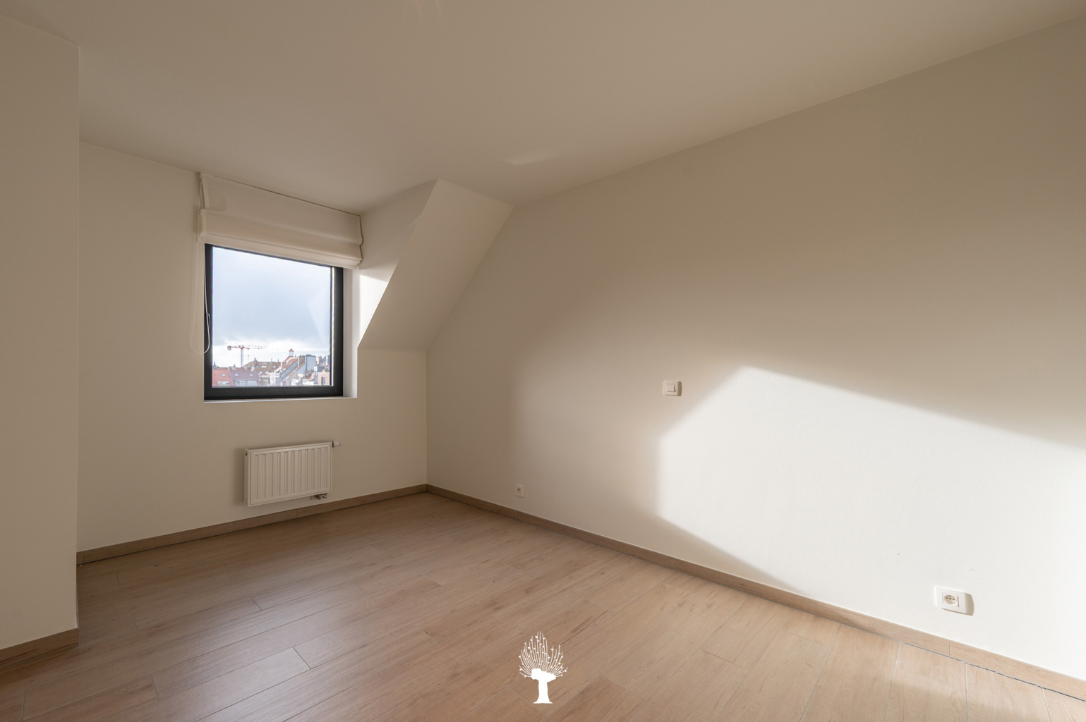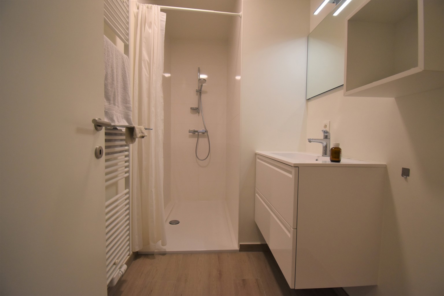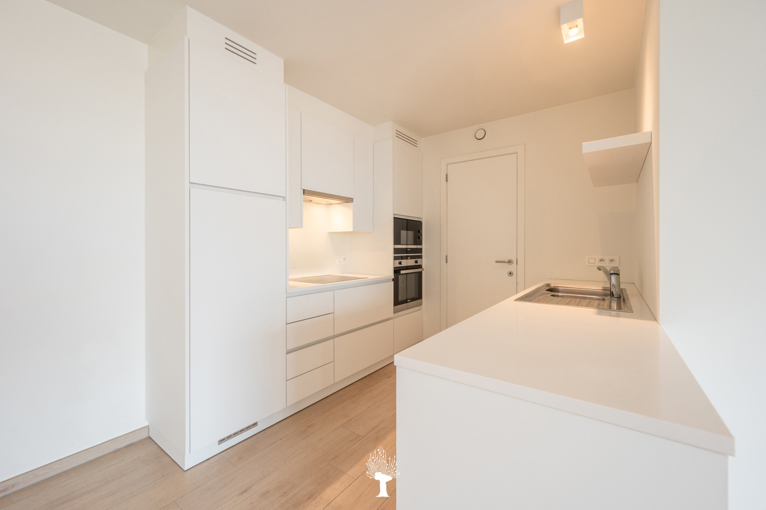 Bel appartement neuf avec une vue dégagée sur la Piers de Raveschootlaan. Composition : un spacieux séjour avec accès à une grande terrasse. La cuisine moderne entièrement équipée est attenante à un local de rangement pratique, avec raccordements pour machine à laver et sèche-linge. La chambre principale dispose d’une salle de bains avec bain et wc, la seconde chambre est équipée d’une salle de douche. Les espaces extérieurs sont généreux : l’appartement bénéficie également d’une terrasse ensoleillée à l’arrière, idéale pour profiter du soleil à tout moment de la journée. Charges : 100 € / mois. Visite sur rendez-vous à notre bureau.