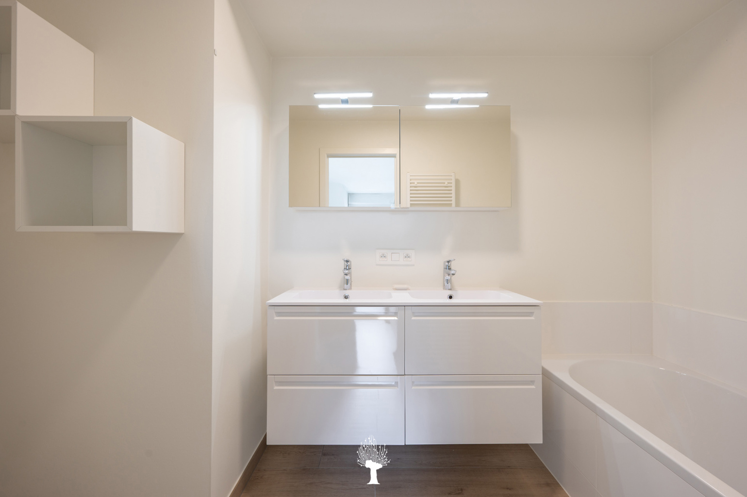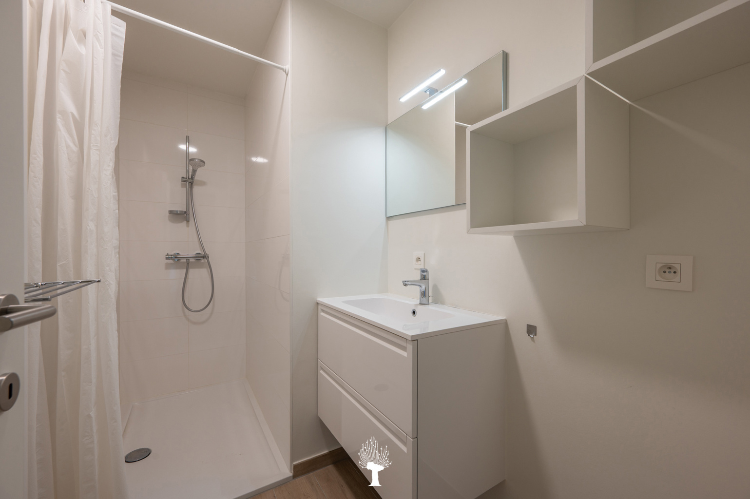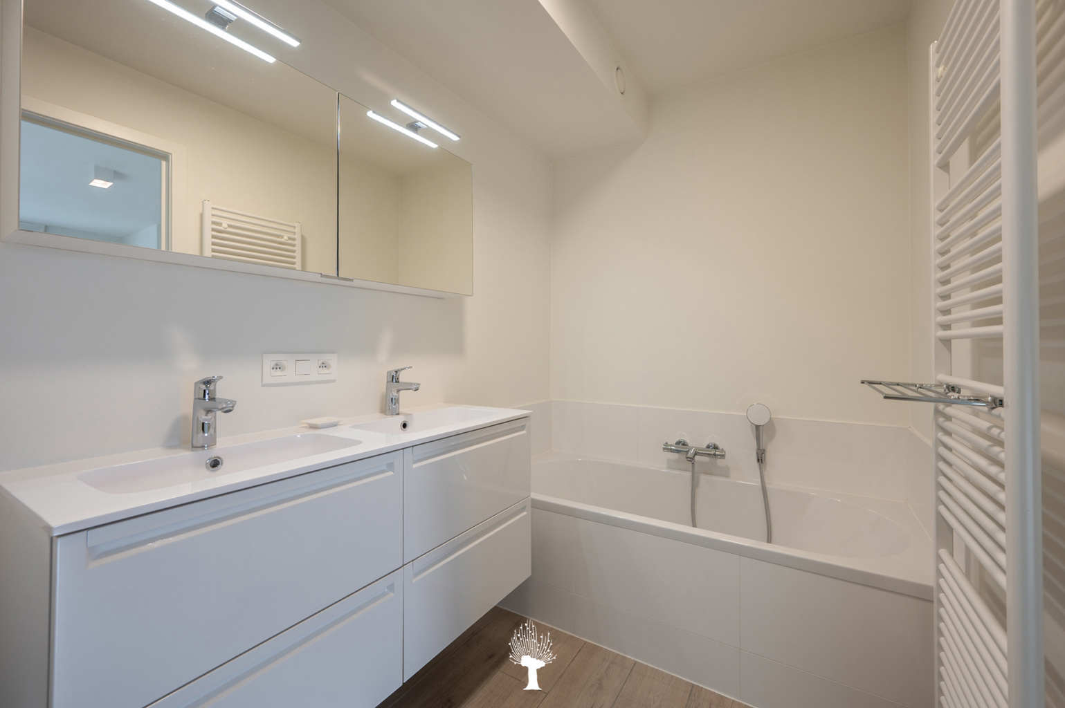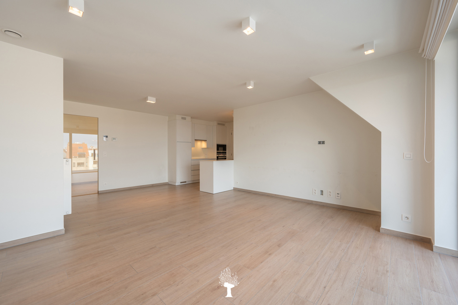 Bel appartement neuf avec une vue dégagée sur la Piers de Raveschootlaan. Composition : un spacieux séjour avec accès à une grande terrasse. La cuisine moderne entièrement équipée est attenante à un local de rangement pratique, avec raccordements pour machine à laver et sèche-linge. La chambre principale dispose d’une salle de bains avec bain et wc, la seconde chambre est équipée d’une salle de douche. Les espaces extérieurs sont généreux : l’appartement bénéficie également d’une terrasse ensoleillée à l’arrière, idéale pour profiter du soleil à tout moment de la journée. Charges : 100 € / mois. Visite sur rendez-vous à notre bureau.