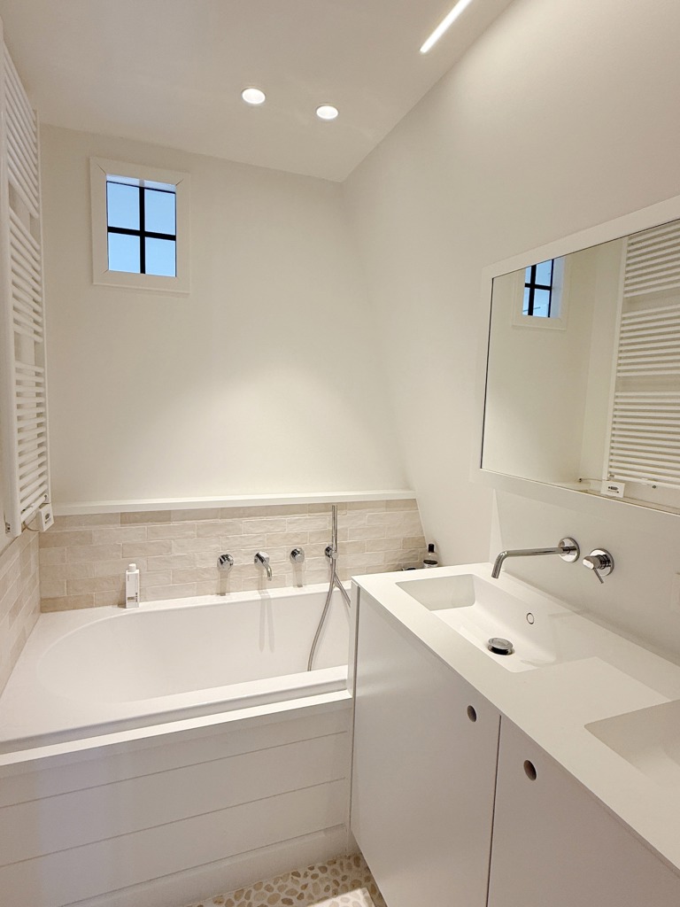 Maison neuve de caractère idéalement située à proximité immédiate du centre du vieux Knokke. Composition : hall d’entrée avec toilette invité. Bureau séparé. Agréable séjour et salle à manger (avec feu ouvert au bois) bénéficiant de grandes baies vitrées donnant sur la terrasse et le jardin aménagé. Cuisine Américaine entièrement équipée. 2 grandes chambres à coucher(lit double) avec salle de douche communicante (douche, lavabo, WC). Les deux chambres disposent d’un accès direct à la terrasse et le jardin. Au premier étage: agréable séjour et salle à manger (feu ouvert au bois). Cuisine ouverte entièrement équipée avec débarras/buanderie pratique attenante. Toilette invités. Au second: suite parentale avec de nombreux placards intégrés. 4ème grande chambre à coucher(lit double). Salle de bains pratique (baignoire, douche, lavabo). Wc de nuit sur le palier. La maison est équipée de chauffage par le sol, pompe à chaleur, panneaux solaires, adoucisseur d’eau, etc… Dépendance aménagée en garage pour deux voitures avec borne de recharge et possibilité d’espace de rangement supplémentaire (accès par l’arrière du terrain). Visite volontiers après rendez-vous via l’une de nos agences. A saisir!