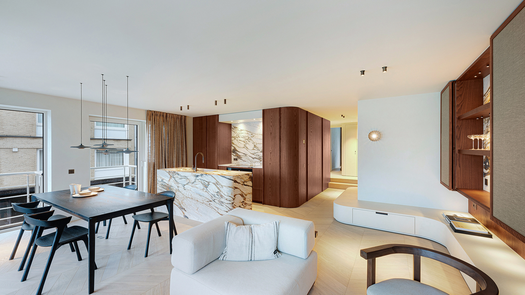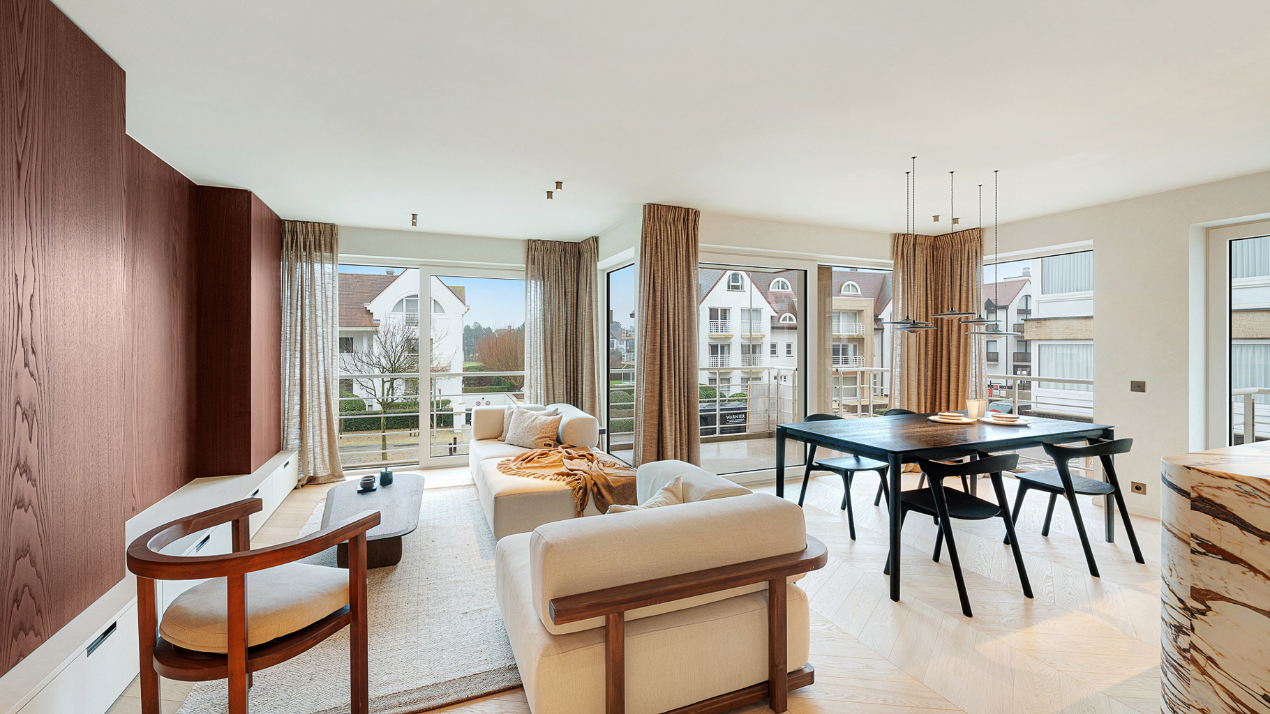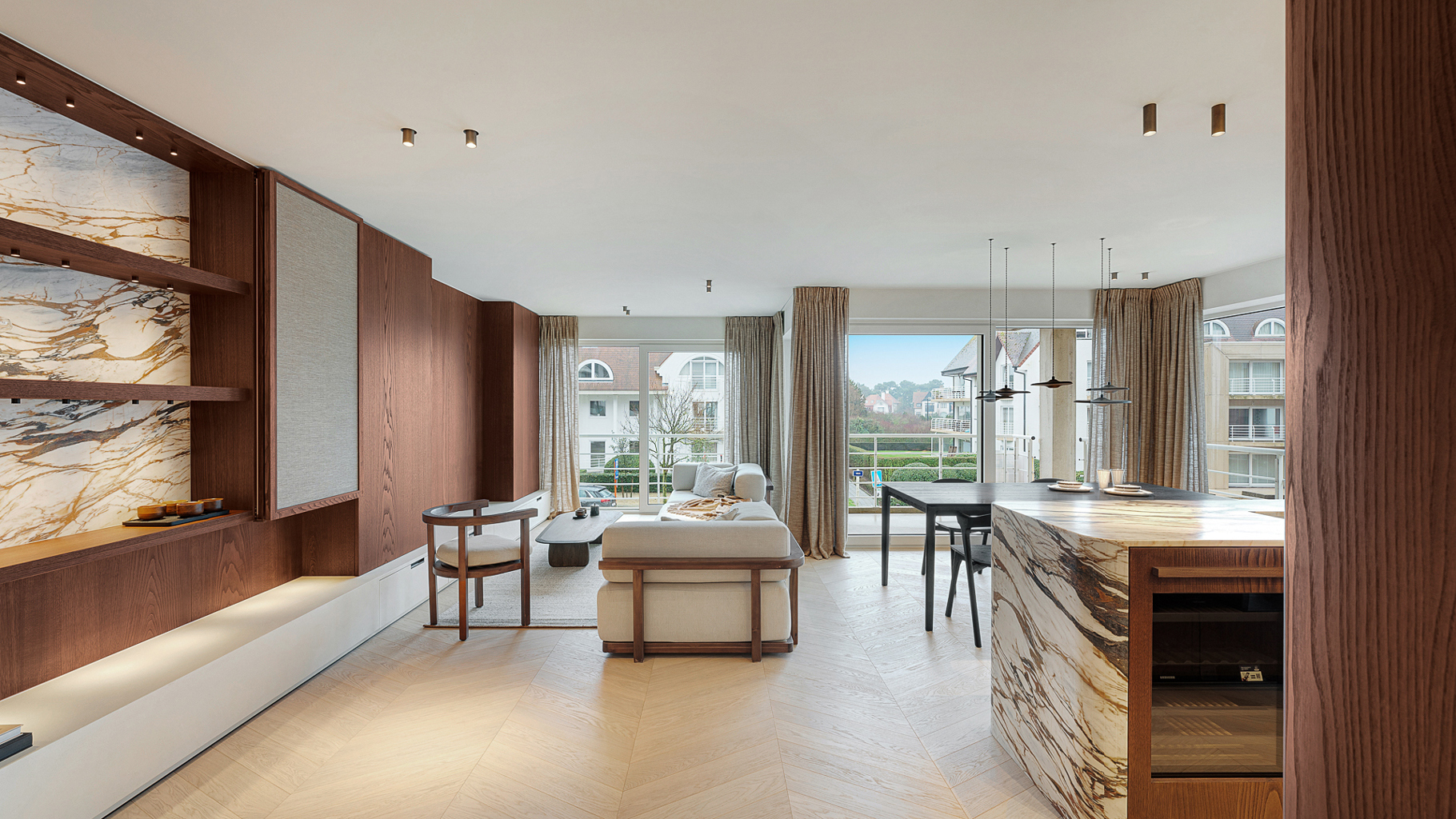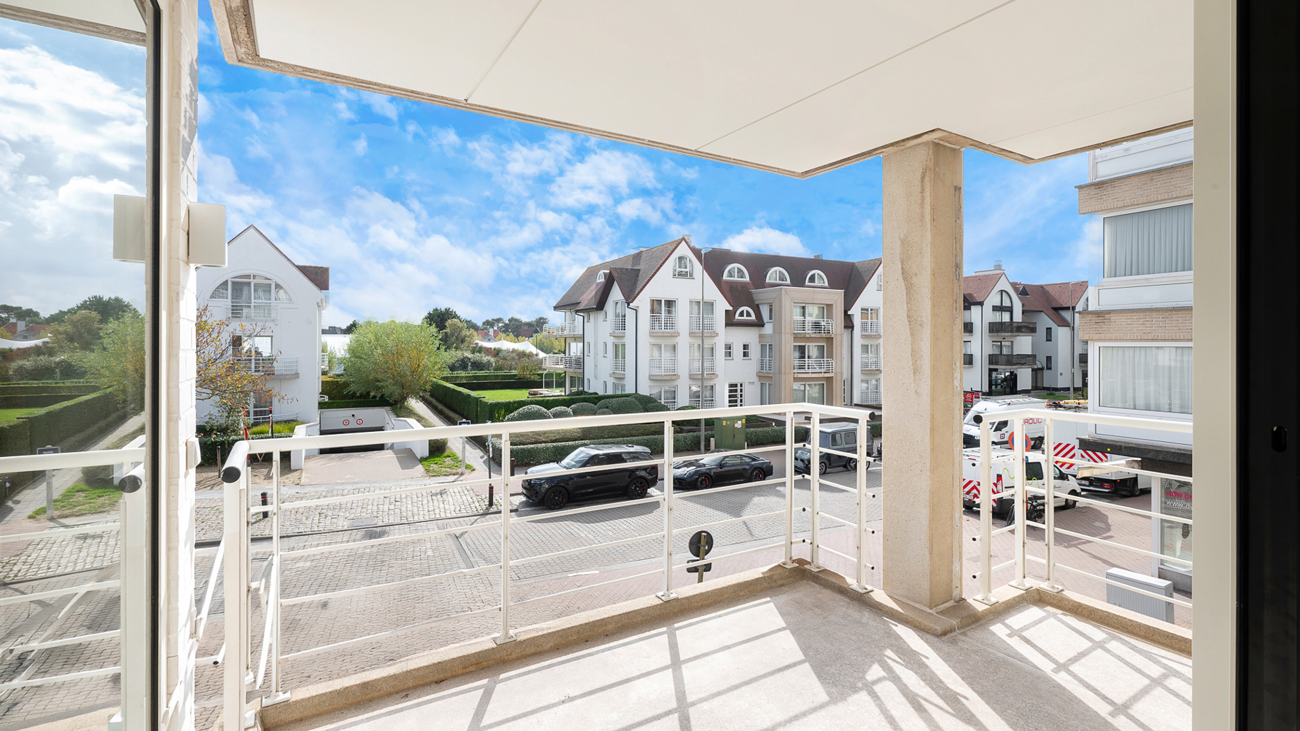 Appartement d'angle, entièrement rénové, avec vue dégagée sur le minigolf et les villas du Zoute. Composition: entrée avec vestiaire et wc. Séjour ouvrant sur belle terrasse ensoleillée. Cuisine américaine entièrement équipée de tous les appareils (Miele/Liebherr). Chambre des parents avec salle de douche attenante. 2ème et 3ème chambre à coucher. Salle de bains pratique. Finitions de très hautes qualités et du sur-mesure impressionant. Cave privée. Local à vélos commun. Possibilité d'achat d'un emplacement de voiture dans la résidence. Visites volontiers après rendez-vous en un de nos bureaux.