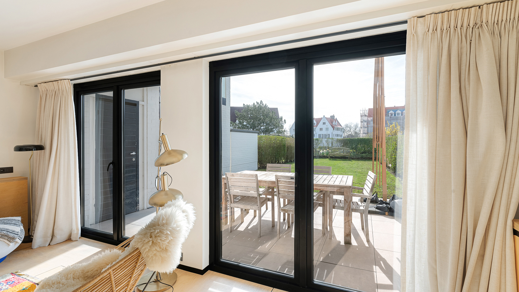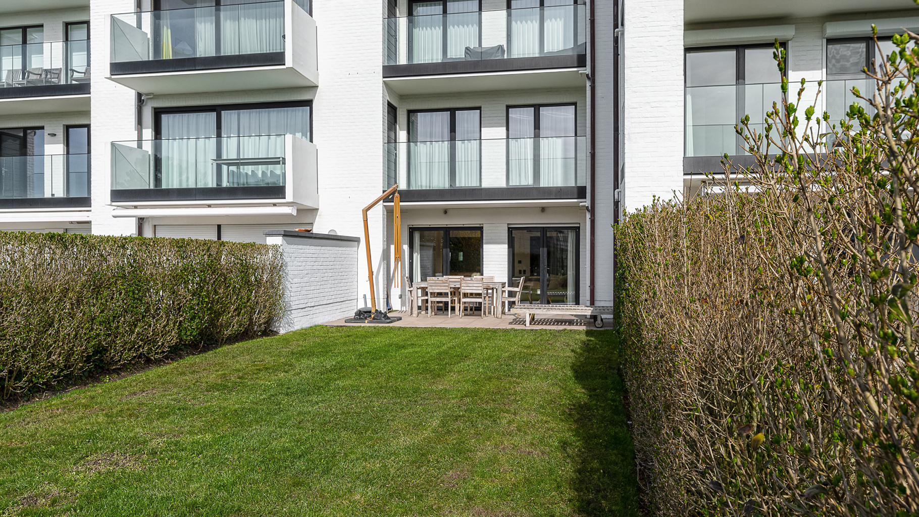 Rez-de-jardin exceptionnel, dans une résidence luxueuse sur la digue piétonne du Zoute. Composition : hall d’entrée avec vestiaire et wc. Cuisine Américaine entièrement équipée. Séjour/salle à manger lumineux avec grandes baies vitrées ouvrant sur terrasse ensoleillée et jardin privatif. Chambre principale avec salle de douche complète (douche, double lavabo, wc). 2ème chambre à coucher avec salle de douche pratique. Cave privée. Local à vélos commun. Conciërge : sécurité et service optimale. Possibilité d'acheter un box de garage dans la résidence. Visites volontiers sur rendez-vous en un de nos bureaux.