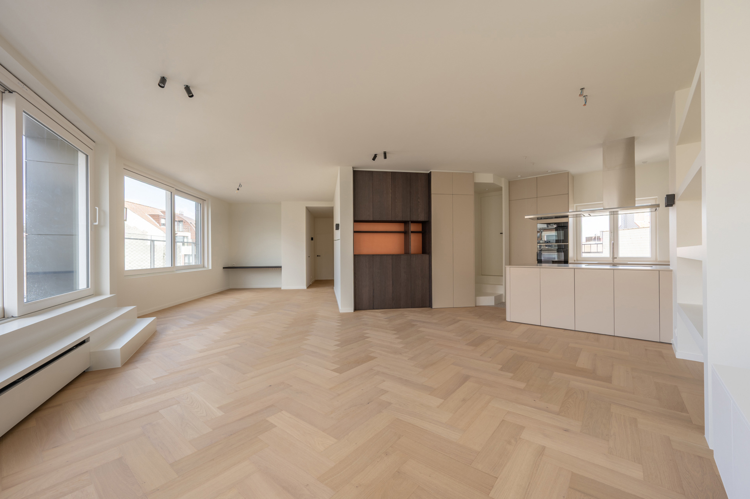 Uitzonderlijk ruim en lichtrijk, nieuwbouw appartement in hartje Knokke... Mooie gevelbreedte! Samenstelling: Inkom met gastentoilet en vestiaire. Aangename woon- en eetkamer met aansluitend terras. Eethoek met aansluitend open keuken, voorzien van alle moderne comfort. Ruime berging met aansluiting wasmachine en droogkast. Master bedroom met ingemaakte kasten en aansluitende badkamer. 2de en 3de Slaapkamer voor dubbel bed met ingemaakte kasten. Aparte douchekamer met dubbele lavabo, douche en toilet. Bezoek gaarne na afspraak in een van onze kantoren.