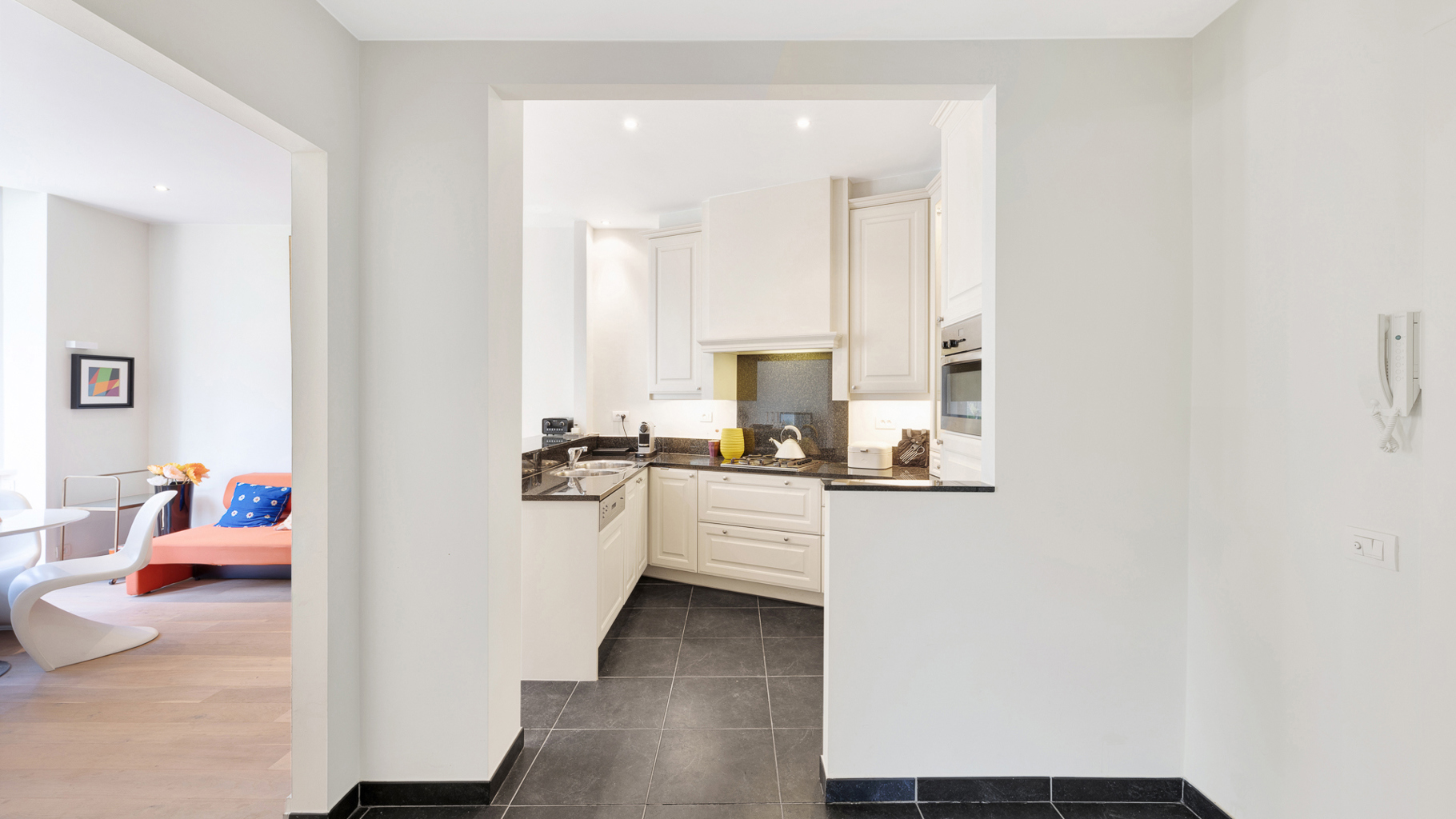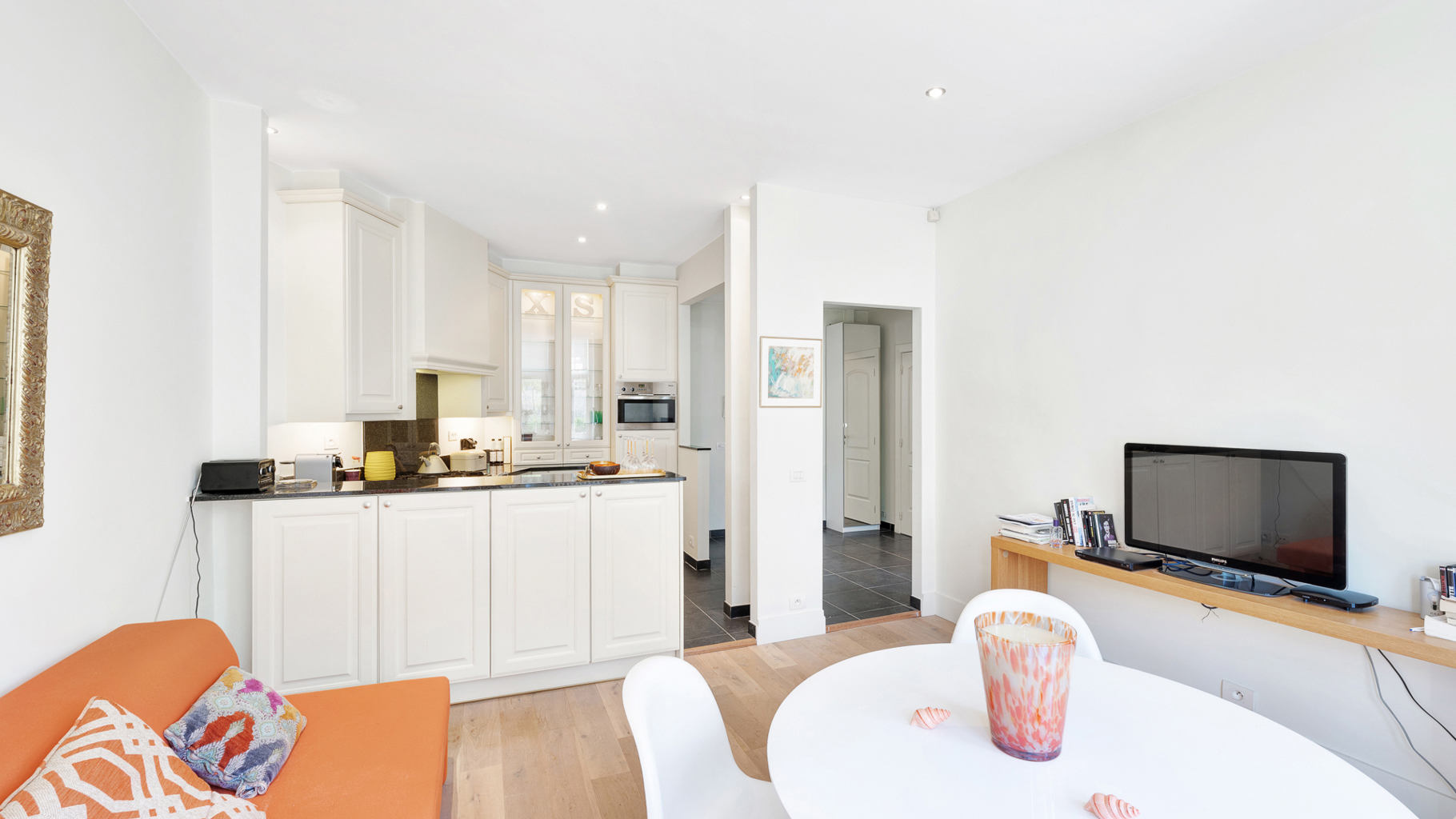 Uniek appartement in een traditioneel normandische residentie, op slechts enkele passen van het Albertplein en het strand. Samenstelling: inkomhall met vestiaire en toilet. Ruime woon- en eetkamer. Open keuken. Slaapkamer voor dubbel bed met aansluitende badkamer. Bezoek graag na afspraak op één van onze kantoren.