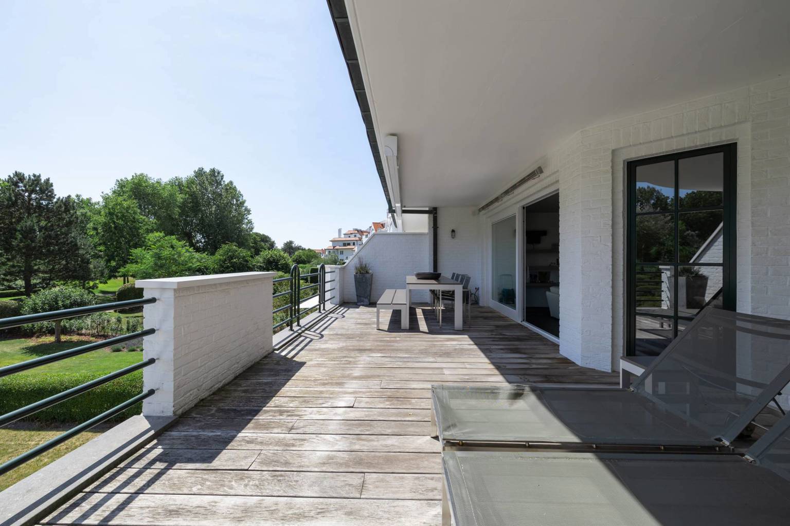Gelegen in het exclusieve domein Tennis Gardens, een privépark van 5 hectare, in het hartje van het Zoute biedt "The Tennis Grove" een luxueus appartement op het zuiden, vlakbij de "Royal Zoute Tennis Club", het Zwin en het strand. Indeling: ruime en lichte woonkamer uitgevens op zonnig terras van 35 m² met prachtig groen uitzicht. Open keuken met hoogwaardige toestellen, en 3 slaapkamers met elk ensuite bad- of douchekamer. De derde slaapkamer dat tevens als bureau gebruikt kan worden geeft uit tot een tweede terras. Bewoners genieten van een privé binnenzwembad. Concierge: optimale service en veiligheid. Mogelijkheid tot aankoop van een garagebox in de residentie. The Tennis Grove: luxe en rust op een toplocatie.