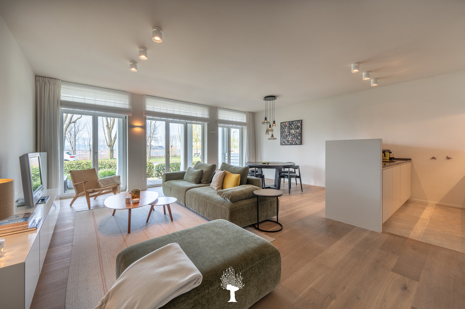 EXCLUSIEF TE KOOP BIJ DIRK WILLEMYNS -Prachtig appartement met tuin en frontaal zicht op het Duinenwatermeer. Samenstelling: inkom met vestiaire en toilet. Zonnige woon- en eetkamer, brede gevel (6,89m), uitgevend op het terras met zicht op het meer. Volledige geïnstalleerde open keuken (Obumex). Master bedroom met aansluitende douchekamer. 2de slaapkamer met praktische douchekamer. Beide slaapkamers geven uit op een tweede terras en de tuin. Kelder en fietsenberging in de benedenverdieping van de residentie. Contacteer ons voor meer info of een bezoek.