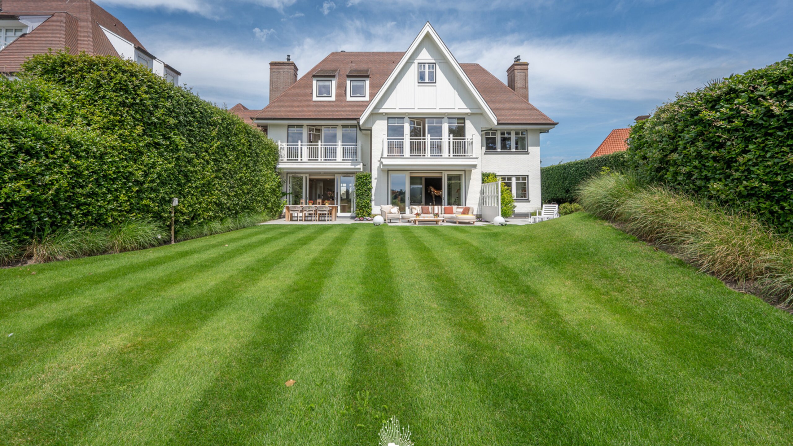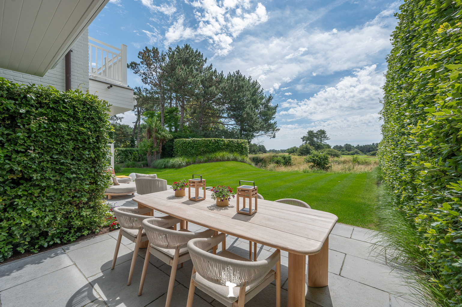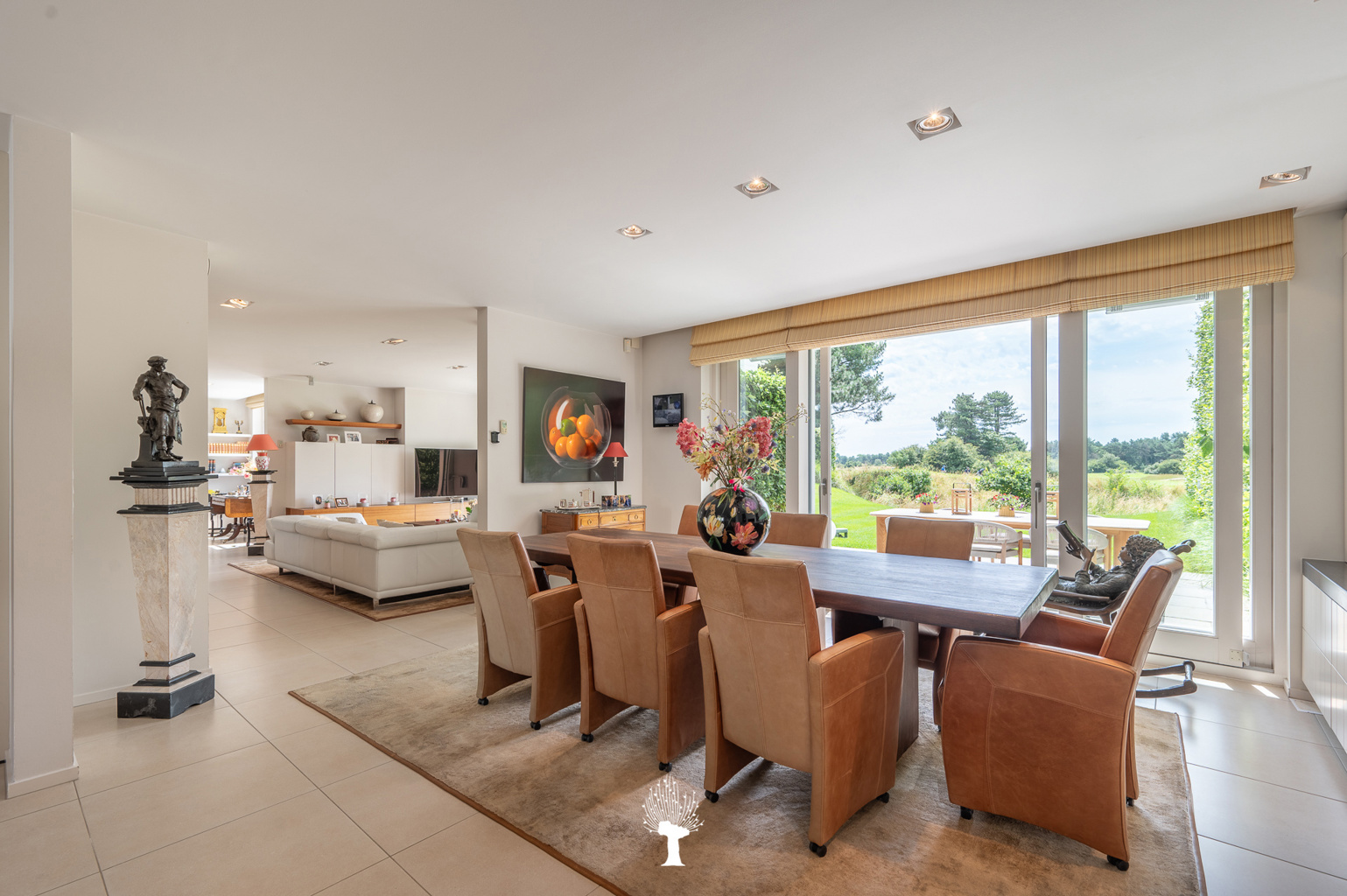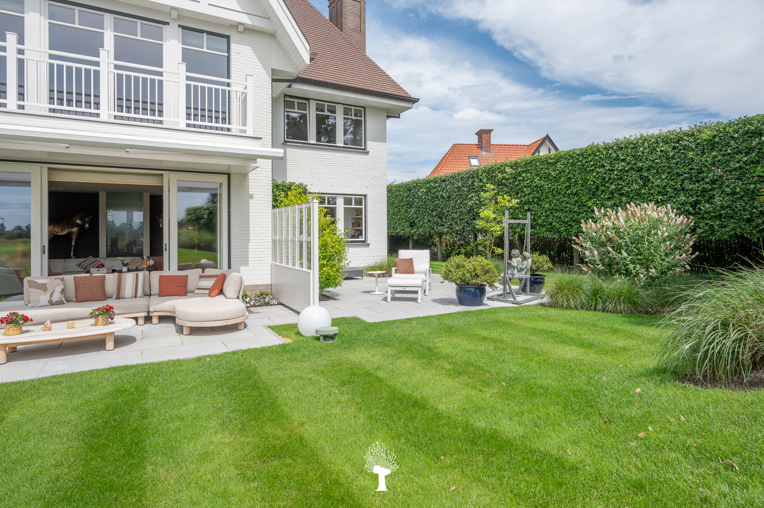 Vennootschap met in zijn actief een uitzonderlijke villa met oninneembaar uitzicht op de golfbanen van de "Royale Zoute Golf Club". Samenstelling: inkomhal met toilet en vestiaire. Royale woonkamer: salon met zeer fraai uitzicht op de fairways van de "Royal Zoute Golf Club". Terras en tuin op het zuiden. Aansluitende bureauruimte met open haard. Eetkamer met open haard en royale, volledig ingerichte keuken met toegang tot terras. Bijkeuken met praktische bergruimte. Eerste verdieping: nachthall, hoofdslaapkamer met terras, dressing en luxueuze badkamer (Sauna infrarood, open haard), 2de slaapkamer met terras en mooie douchekamer en een 3de slaapkamer met douchekamer. Tweede verdieping: 3 slaapkamers telkens met eigen douchekamer. 7de, kleinere, slaapkamer/wasplaats. Berging. Lift die gaat van -1 naar +1. Dubbele garage en outdoor parking. Extra dubbele garage in de kelderverdieping, directe toegang via de lift. Aparte gastenkamer/conciërgerie met keuken en douchekamer boven de garage. Recent geïnstalleerde warmtepomp. Bezoek en bijkomende informatie gaarne na afspraak via onze kantoren.