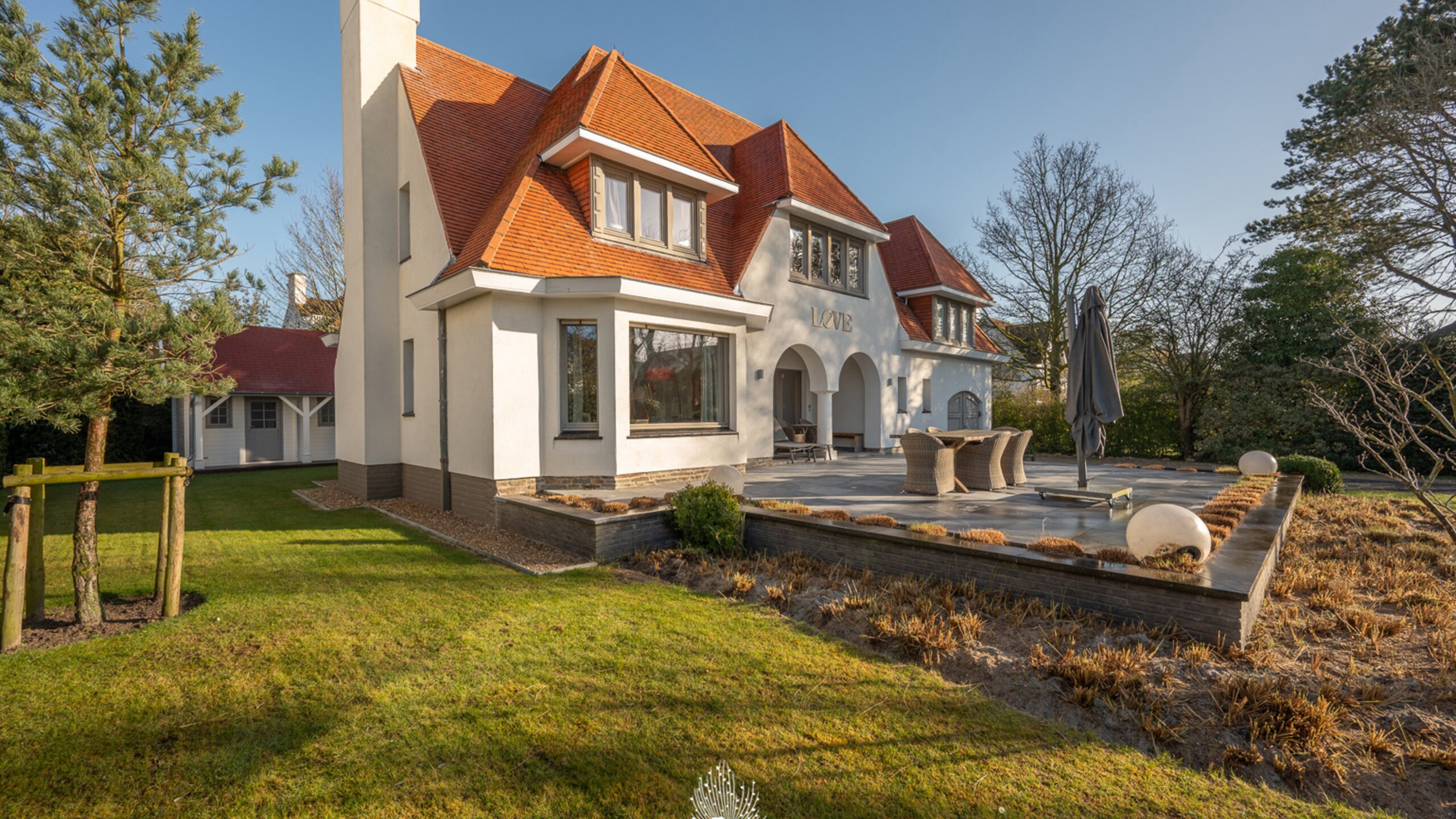 Gedistingeerde alleenstaande villa, verscholen in een idyllisch Zoutepaadje op korte wandelafstand van de Royal Zoute Golf Club, het charmante dominikanenkerkje en het strand. Indeling: inkomhal met vestiaire en toilet. Riante en sfeervolle leefruimte (parket) met open haard en elegante eetkamer. Volledig uitgeruste keuken met hoogwaardige afwerking. Op de eerste verdieping bevinden zich vijf smaakvolle slaapkamers met ingemaakte kasten. Twee luxueuze badkamers en een aparte douchekamer zorgen voor optimaal comfort. Inpandige garage en extra buitenparking op de oprit. De zuidgerichte, perfect afgesloten tuin biedt volledige privacy. "Villa Love" combineert charme, elegantie en rust op een uitzonderlijke ligging in het hart van het oude Zoute.