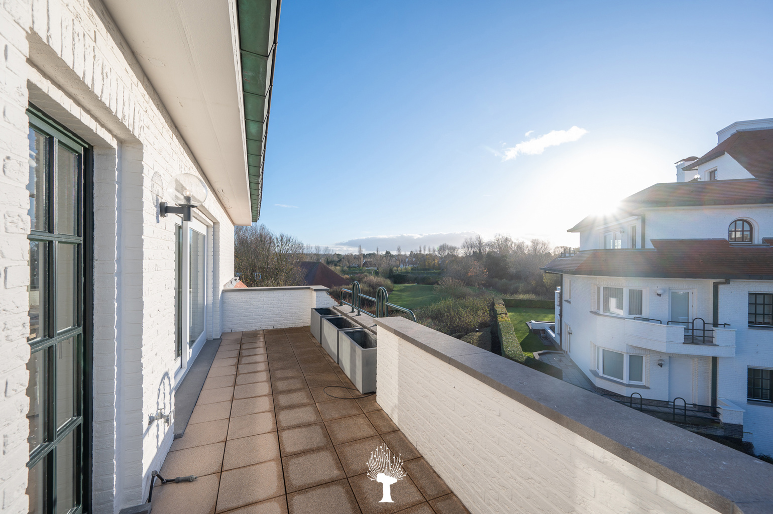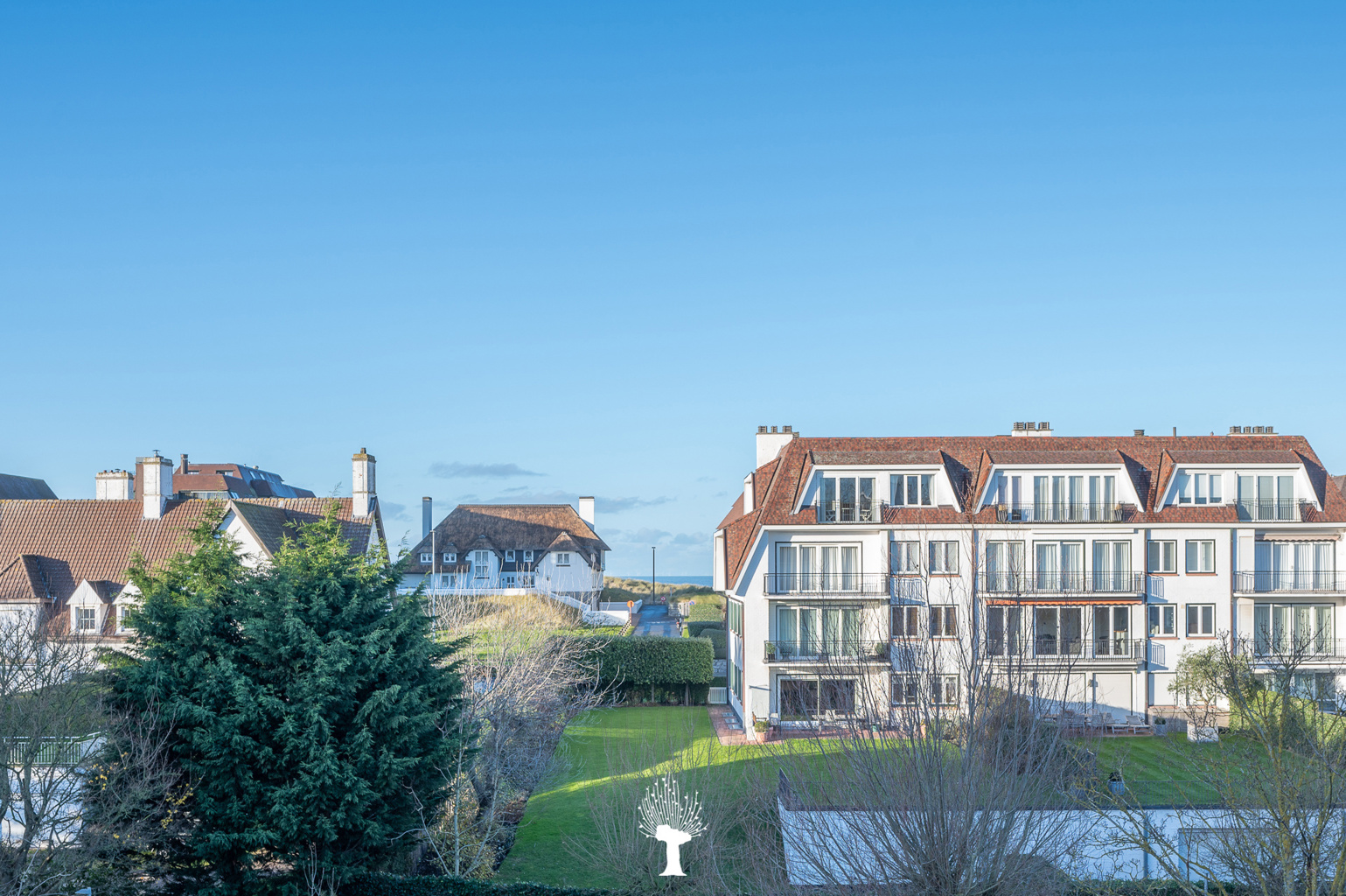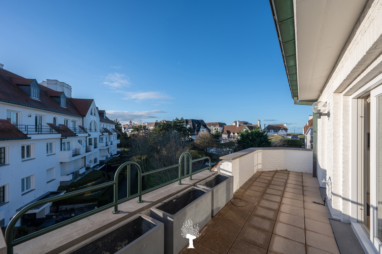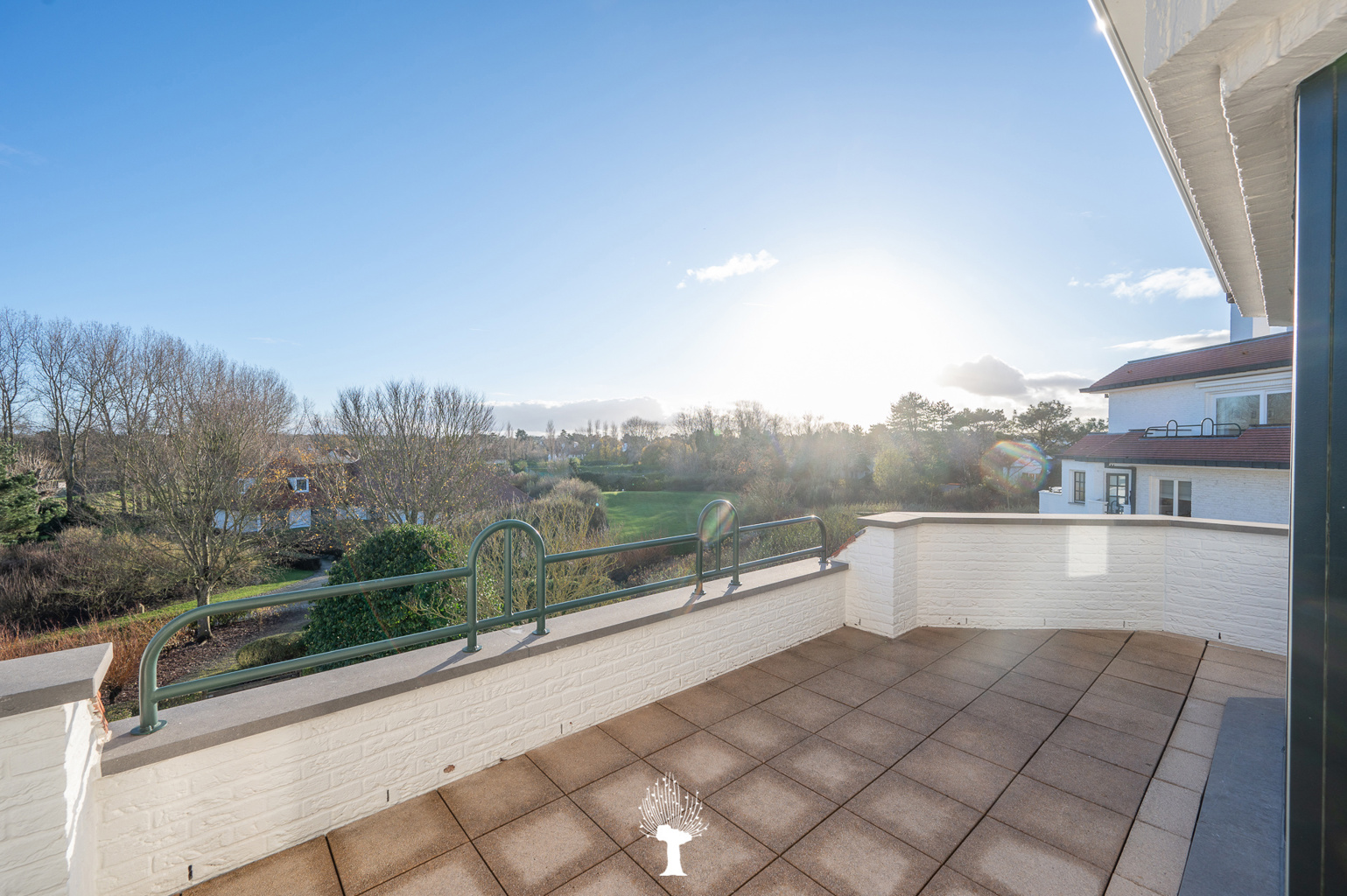 Prachtig hoekappartement met maar grote zonneterrassen.Indeling: directe toegang tot het appartement vanuit de lift. Inkom met vestiaire en gastentoilet. Ruime woon- en eetkamer met toegang tot twee ruime, zonnige terrassen met een uniek uitzicht op het domein. Moderne open keuken, uitgerust met toestellen van Miele en uitzicht op zee. Via de nachthal bereikt u 3 ruime slaapkamers, elk met een dubbel bed en ingebouwde kasten, en elk met toegang tot een van de terrassen. De masterbedroom heeft een eigen badkamer, voorzien van een ligbad, dubbele lavabo, inloopdouche en toilet. De twee andere slaapkamers delen een douchekamer met inloopdouche en lavabo. Er is een afzonderlijke grote bergruimte, waar onder andere de technische installaties en aansluitingen voor wasmachine/droogkast zich bevinden. Privatieve kelder. Gemeenschappelijke fietsenberging. Domeinopzichter: maximale veiligheid en service. Meerdere buitenstaanplaatsen voor bezoekers. Mogelijkheid tot aankoop van een autostaanplaats in de residentie. Bezoek gaarne na afspraak in één van onze kantoren.