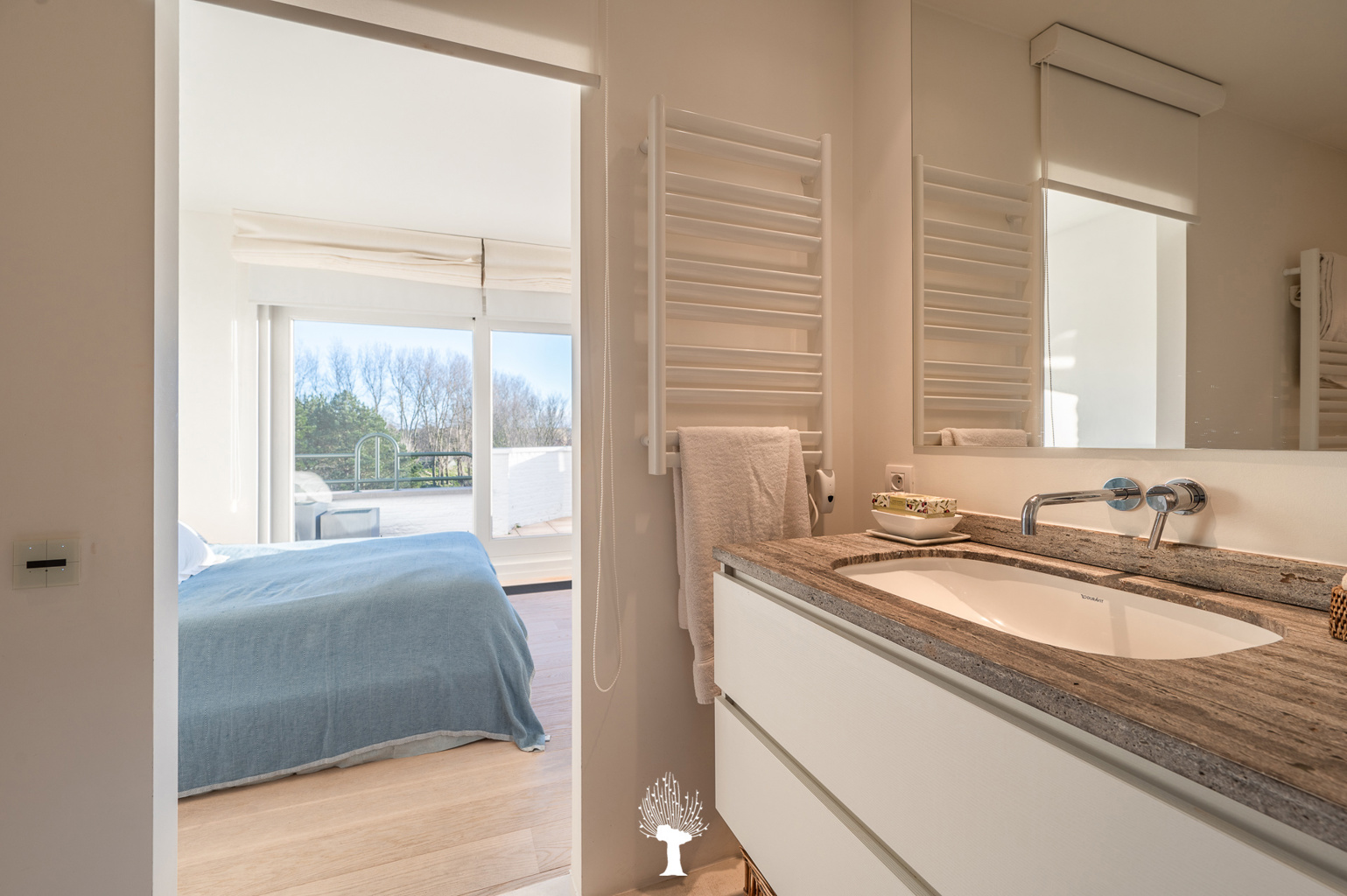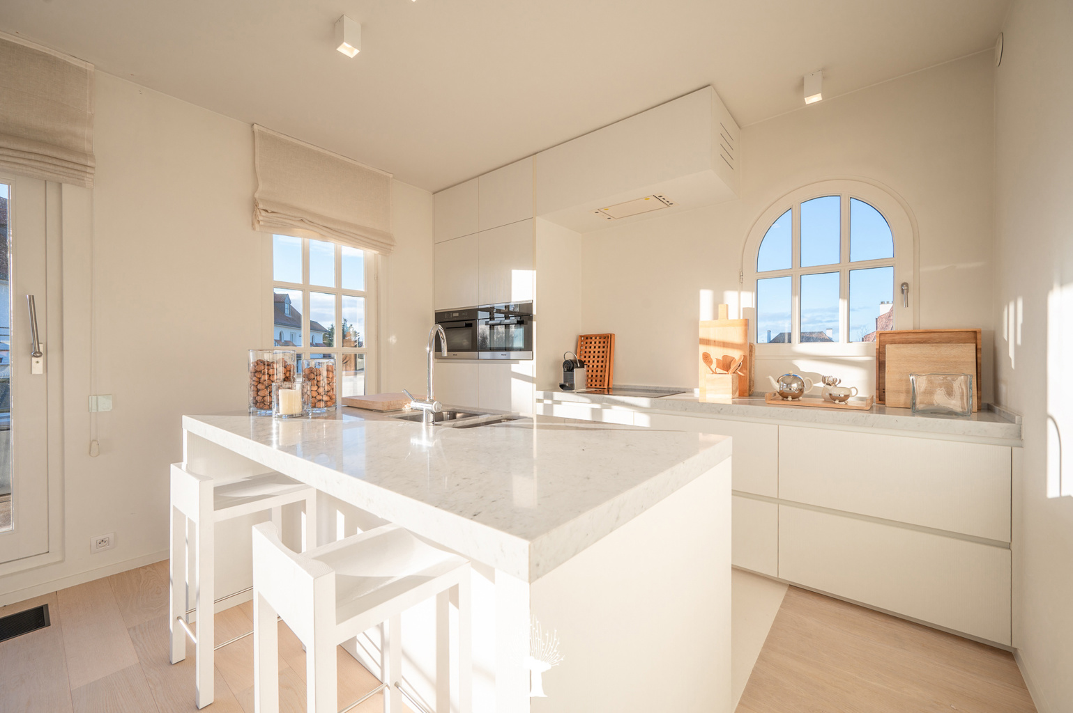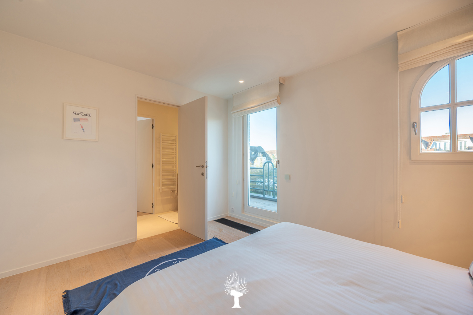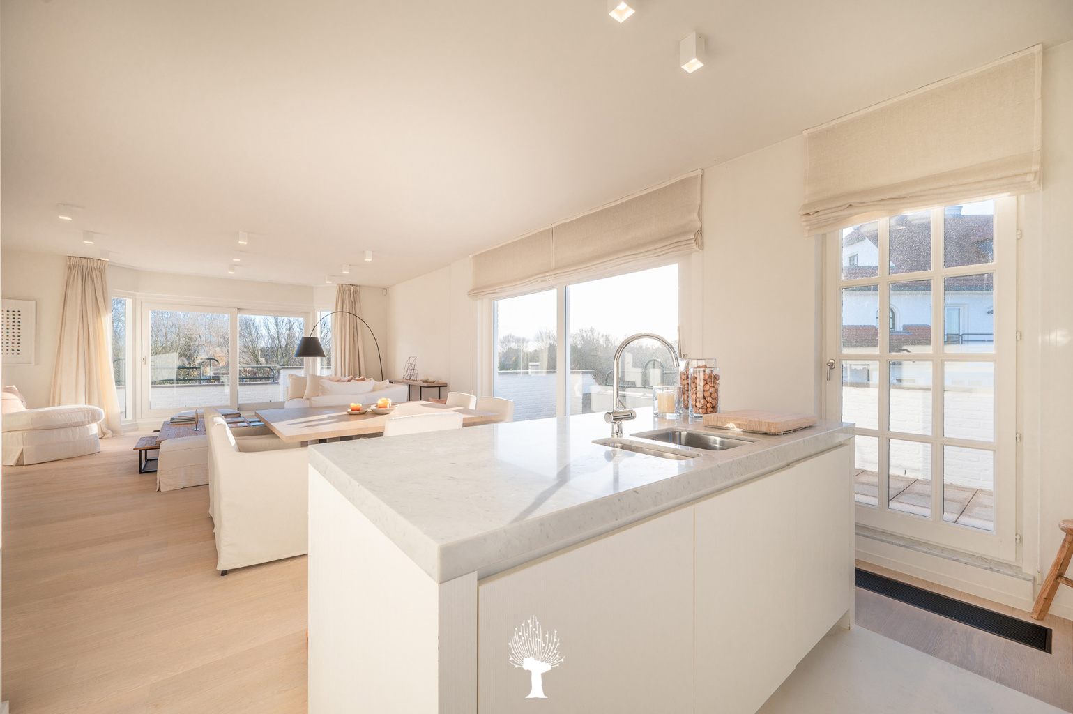 Prachtig hoekappartement met maar grote zonneterrassen.Indeling: directe toegang tot het appartement vanuit de lift. Inkom met vestiaire en gastentoilet. Ruime woon- en eetkamer met toegang tot twee ruime, zonnige terrassen met een uniek uitzicht op het domein. Moderne open keuken, uitgerust met toestellen van Miele en uitzicht op zee. Via de nachthal bereikt u 3 ruime slaapkamers, elk met een dubbel bed en ingebouwde kasten, en elk met toegang tot een van de terrassen. De masterbedroom heeft een eigen badkamer, voorzien van een ligbad, dubbele lavabo, inloopdouche en toilet. De twee andere slaapkamers delen een douchekamer met inloopdouche en lavabo. Er is een afzonderlijke grote bergruimte, waar onder andere de technische installaties en aansluitingen voor wasmachine/droogkast zich bevinden. Privatieve kelder. Gemeenschappelijke fietsenberging. Domeinopzichter: maximale veiligheid en service. Meerdere buitenstaanplaatsen voor bezoekers. Mogelijkheid tot aankoop van een autostaanplaats in de residentie. Bezoek gaarne na afspraak in één van onze kantoren.