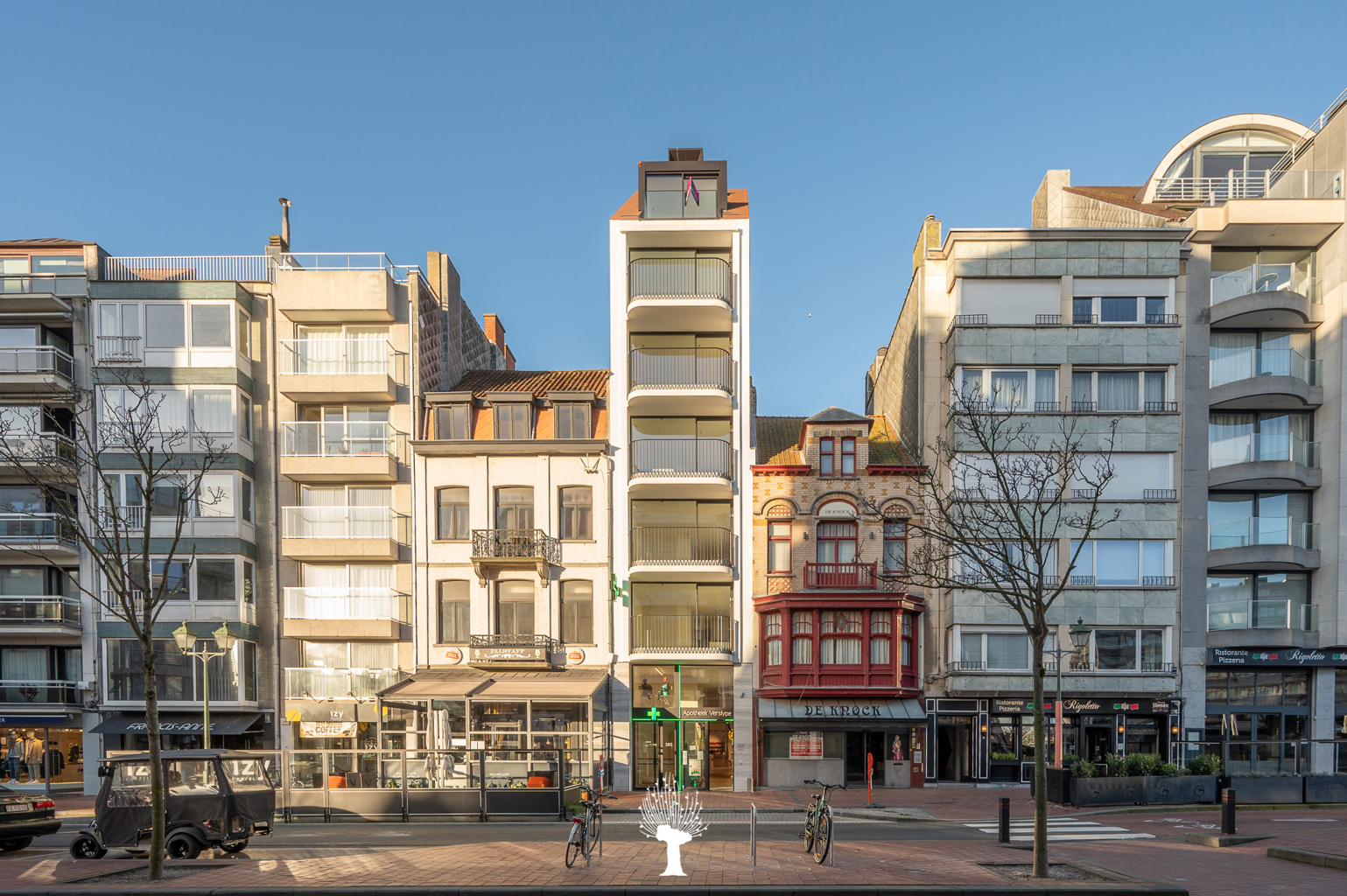 Nieuwbouwappartement met zijdelings zeezicht in een hedendaagse en stijlvolle residentie, centraal gelegen op wandelafstand van het strand. Indeling: inkomhal met gastentoilet. 2 slaapkamers voorzien van ingemaakte kasten. Leefruimte met toegang tot het terras met open zicht. Volledig ingerichte open keuken. Privatieve berging. Verkoop onder BTW. Bezoek graag na afspraak via één van onze kantoren.