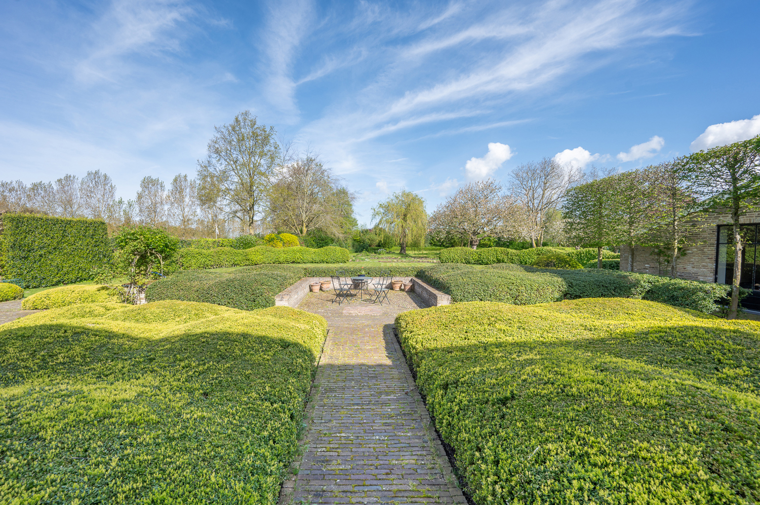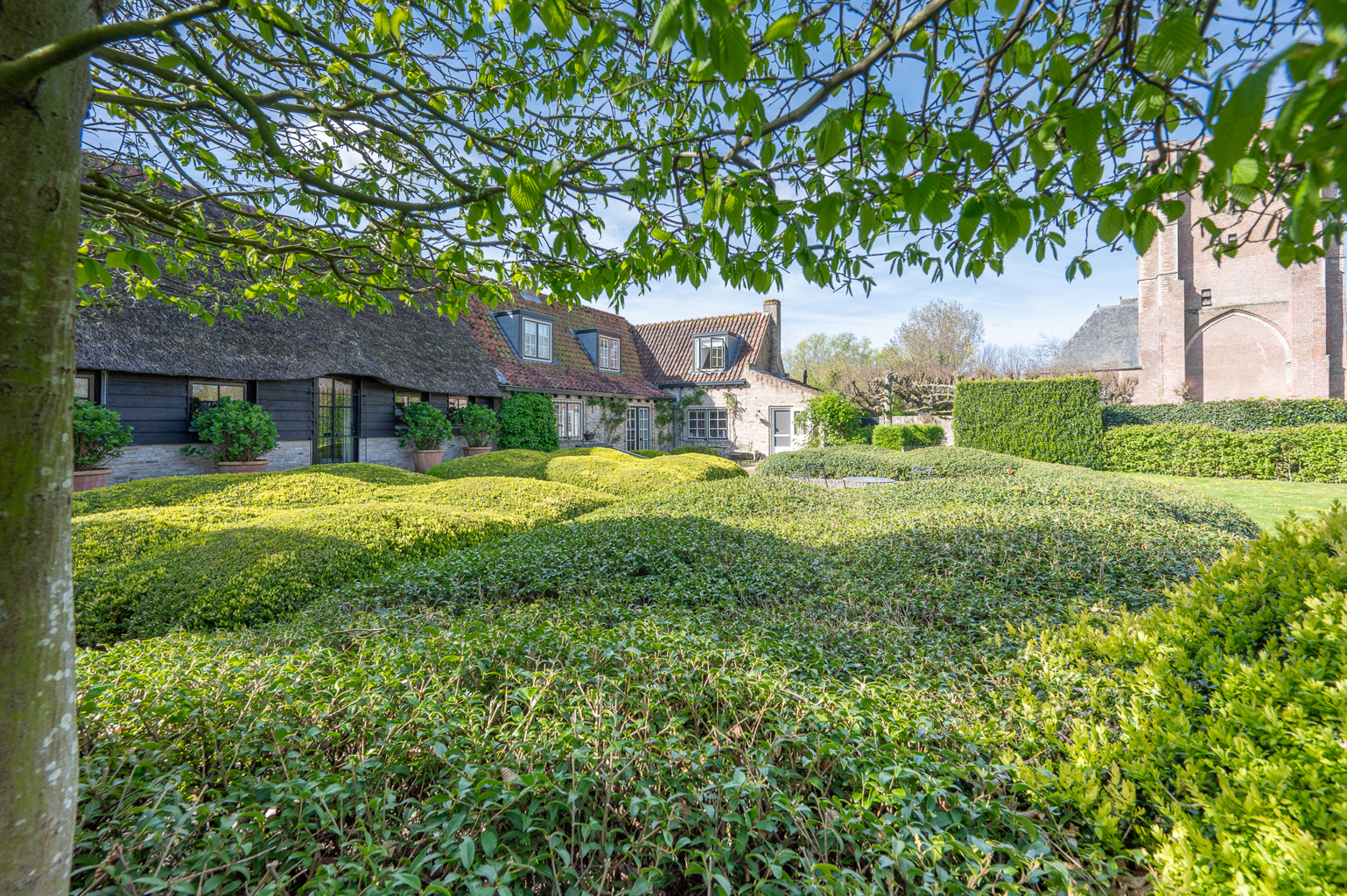 Prachtig gerenoveerde hoeve met karakter, gelegen op een royaal perceel van 4.230 m², vlakbij de kerk van Sint Anna ter Muiden. Deze woning bevindt zich op slechts enkele minuten van het Zoute en op wandelafstand van het centrum van Sluis. Indeling: inkomhal met vestiaire en gastentoilet. Gezellige ontvangstkamer voorzien van een open haard, afgewerkt met Delftse tegels, en met mooi uitzicht op het zonnige terras en de feeërieke parktuin met vijver. Aansluitende eetkamer. De ruime leefkeuken, eveneens met open haard, is volledig uitgerust met moderne voorzieningen en heeft toegang tot het terras en de tuin. TV-salon/bibliotheek met een bureauhoek en een open haard, met een plafond dat reikt tot de nok van het dak. Masterbedroom met aansluitende dressing en luxueuze badkamer met ligbad, inloopdouche, dubbele lavabo, toilet en bidet. Aparte wasruimte. Wijnkelder. Eerste verdieping: ruime slaapkamer met ingebouwde kasten, badkamer met douche, lavabo en toilet. Kitchenette met eethoek en een aansluitend salon met TV. Deze ruimte kan eventueel worden omgebouwd tot een extra slaapkamer en badkamer, maar is nu ideaal als gastenverblijf of voor een inwonende conciërge. Achter de woning ligt een prachtig buitenterras en een apart bijgebouw voorzien van keuken en douchekamer. Ruime garage voor 3/4 wagens. De oprit en de buitenparking bieden ruimte voor meerdere voertuigen. Daarnaast is er een aparte schuur voor het opbergen van tuingereedschap. Deze woning is een ware oase van rust, authenticiteit en privacy. Het is de ideale keuze voor wie op zoek is naar een tweede verblijf of een permanente woning in een prachtige, rustige omgeving. Bezoek graag na afspraak via één van onze kantoren.