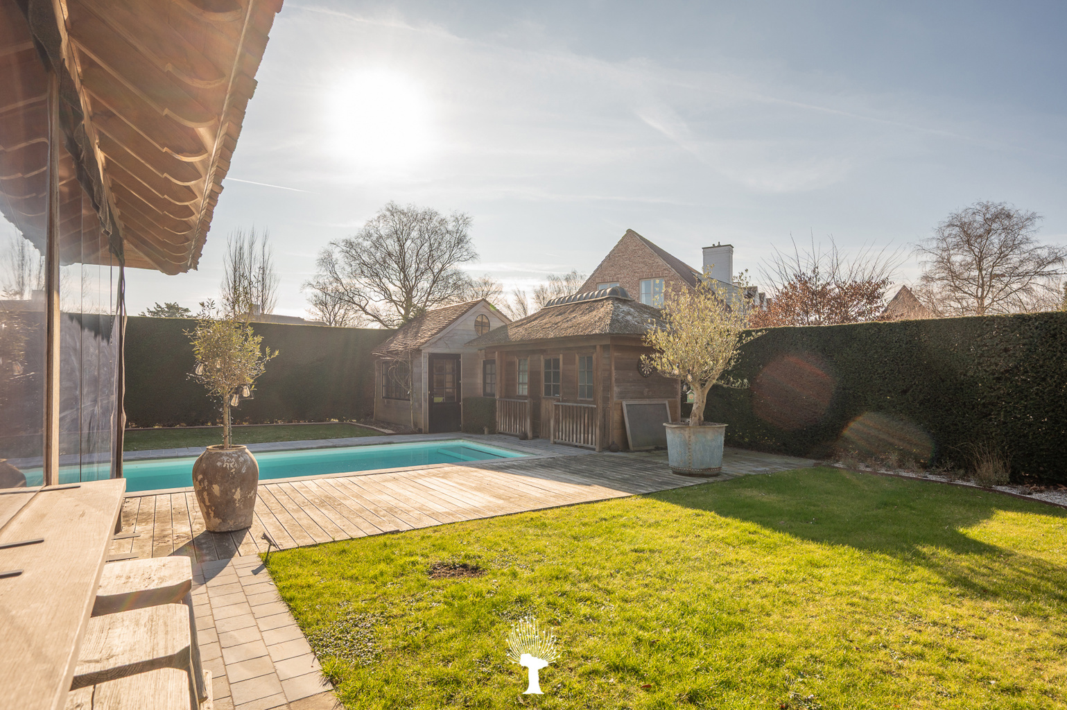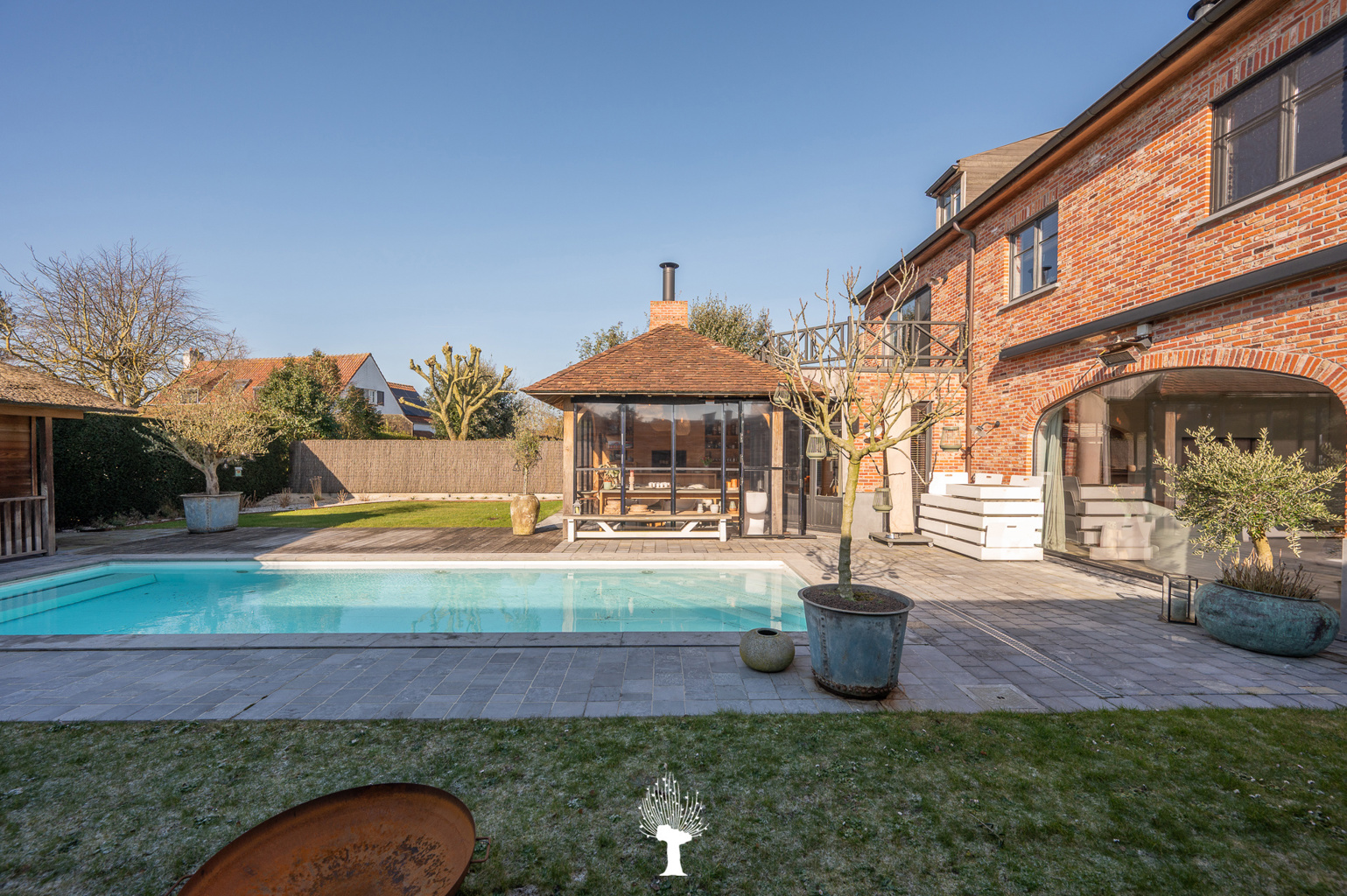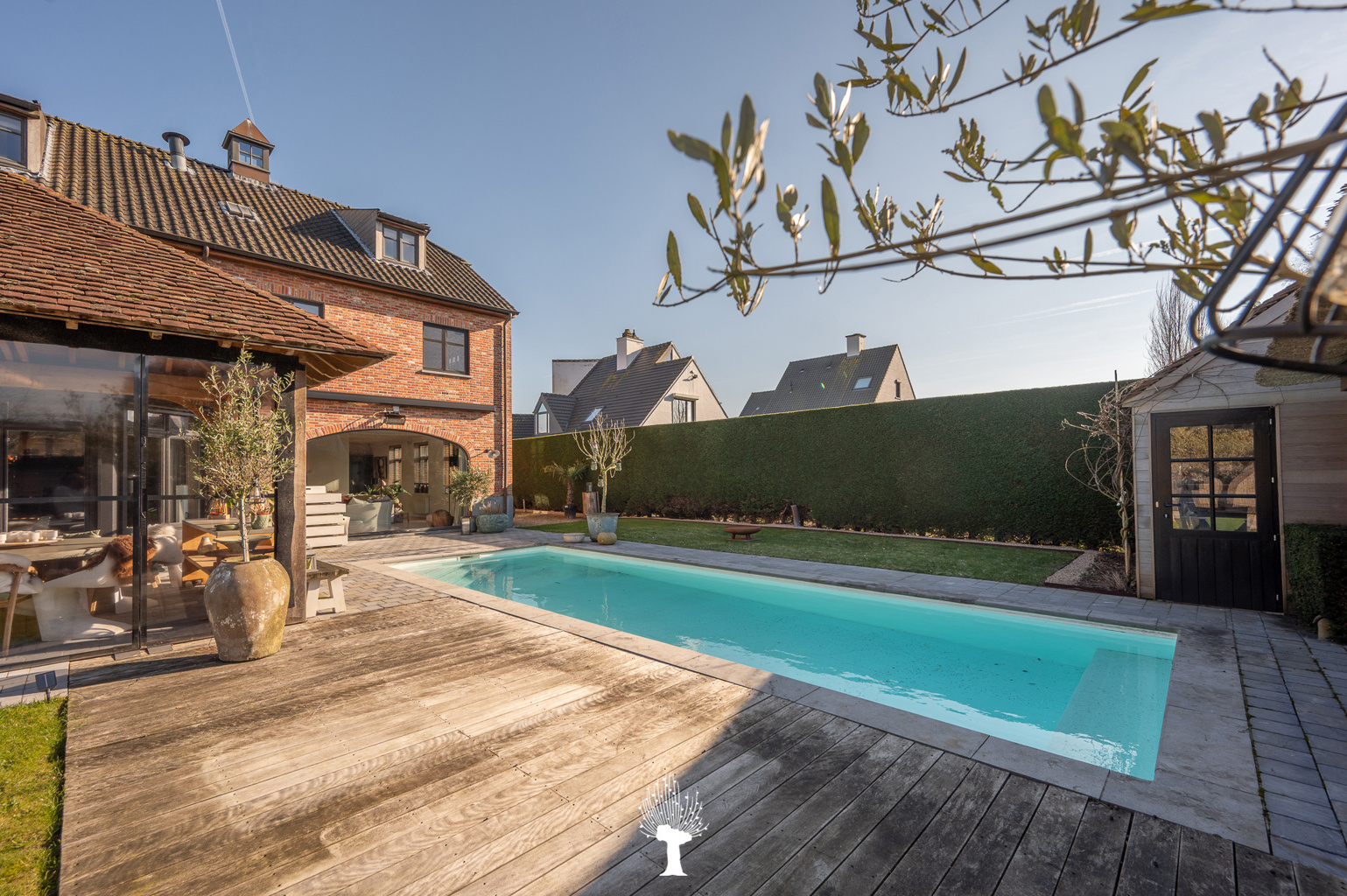 Zeer ruime en luxueuze, alleenstaande villa in een residentiële omgeving. Indeling: inkom met vestiaire en gastentoilet. Zonnige woonkamer met grote raampartijen; en gezellige gashaard; openend op de zuidwest georiënteerde tuin met zwembad. Royaal geïnstalleerde keuken met uitzonderlijk groot keukeneiland en praktische bijkeuken met ingemaakte kasten, lavabo en aansluiting voor was- en droogkast. Aansluitend orangerie in massieve eik met gezellige open haard voor bbq. Kelder. Op de 1ste verdieping: 1ste ruime slaapkamer met ingemaakte kasten. Aparte douchekamer met inloopdouche, wc en lavabo. Master bedroom openend op terras. Eigen royale badkamer (ligbad, inloopdouche, lavabo, wc) en toegang tot hammam (mogelijkheid tot 5de slaapkamer). Grote dressing. 3de slaapkamer met ingemaakte kasten en aansluitende douchekamer. Apart wc. Op de 2de verdieping: 4de slaapkamer met ingemaakte kast. Aparte Douchekamer (inloopdouche, wc en lavabo). Aan de achterzijde van de tuin is er een polyvalente ruimte en poolhouse met vestiare en wc. Inpandige garage voor 2 wagens en outdoor parking. Buitenberging voor fietsen. Bezoek gaarne na afspraak via één van onze kantoren.