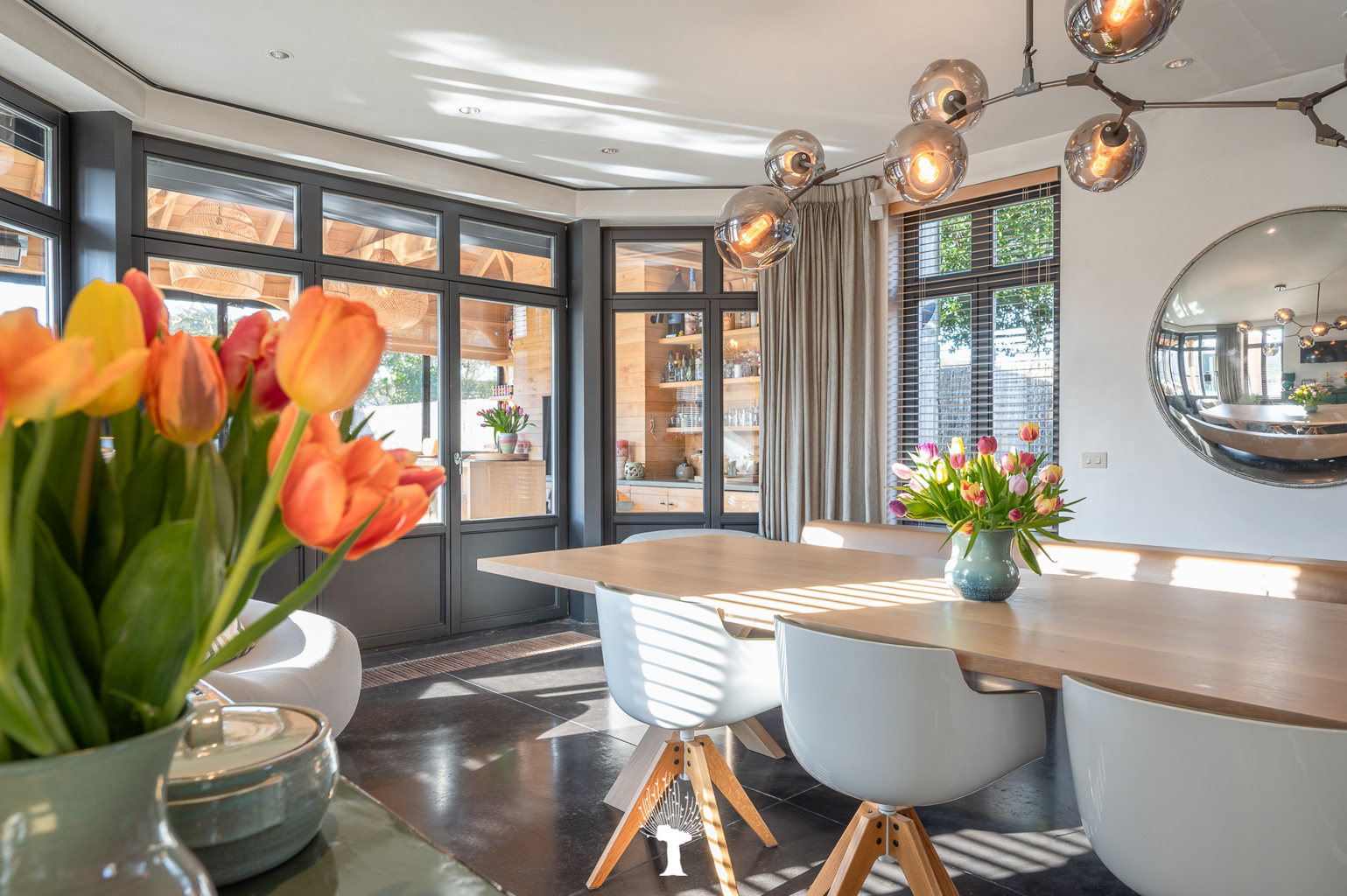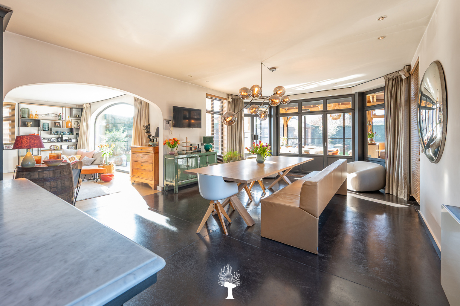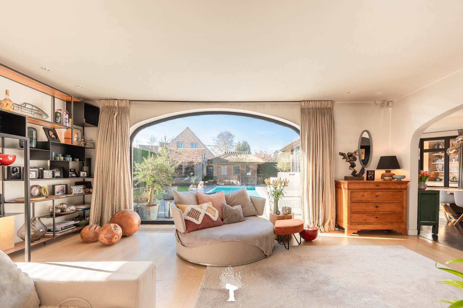 Zeer ruime en luxueuze, alleenstaande villa in een residentiële omgeving. Indeling: inkom met vestiaire en gastentoilet. Zonnige woonkamer met grote raampartijen; en gezellige gashaard; openend op de zuidwest georiënteerde tuin met zwembad. Royaal geïnstalleerde keuken met uitzonderlijk groot keukeneiland en praktische bijkeuken met ingemaakte kasten, lavabo en aansluiting voor was- en droogkast. Aansluitend orangerie in massieve eik met gezellige open haard voor bbq. Kelder. Op de 1ste verdieping: 1ste ruime slaapkamer met ingemaakte kasten. Aparte douchekamer met inloopdouche, wc en lavabo. Master bedroom openend op terras. Eigen royale badkamer (ligbad, inloopdouche, lavabo, wc) en toegang tot hammam (mogelijkheid tot 5de slaapkamer). Grote dressing. 3de slaapkamer met ingemaakte kasten en aansluitende douchekamer. Apart wc. Op de 2de verdieping: 4de slaapkamer met ingemaakte kast. Aparte Douchekamer (inloopdouche, wc en lavabo). Aan de achterzijde van de tuin is er een polyvalente ruimte en poolhouse met vestiare en wc. Inpandige garage voor 2 wagens en outdoor parking. Buitenberging voor fietsen. Bezoek gaarne na afspraak via één van onze kantoren.