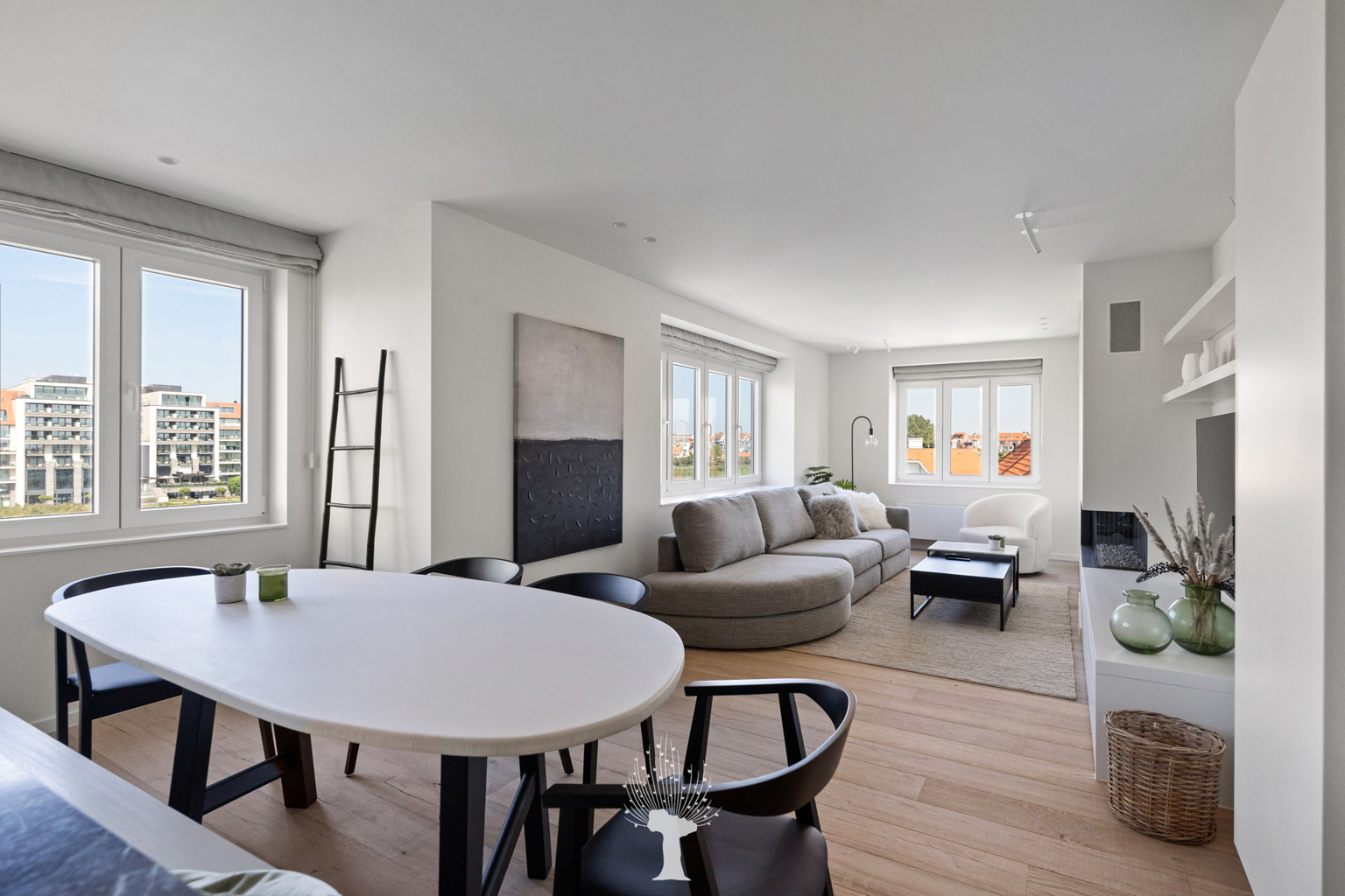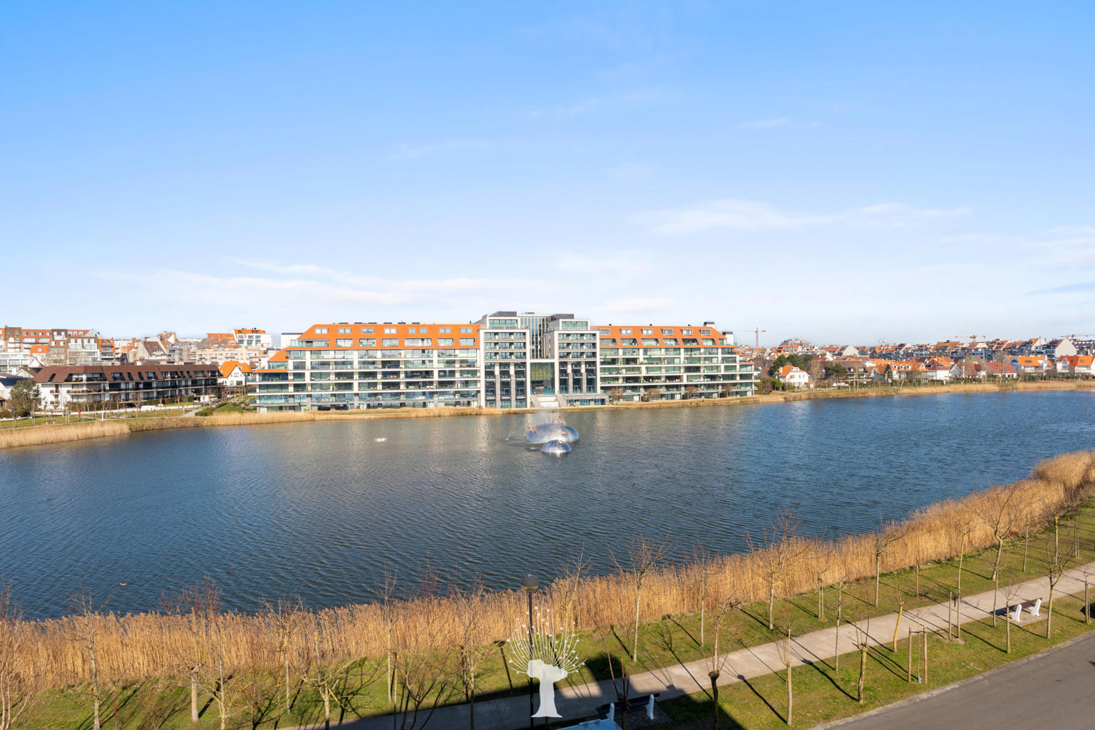 Luxueus vernieuwd hoekappartement in een standingvolle villaresidentie met mooi uitzicht op het Zegemeer, tegenover "La Réserve". Samenstelling: royale inkomhall met vestiaire en gastentoilet. Zonnige woon- en eetkamer met veel lichtinval en toegang tot terras met open zicht op het Zegemeer. Open keuken. Master bedroom met aansluitende douchekamer en terras. 2 slaapkamers, elk met hun eigen bad- of douchekamer. Mogelijkheid tot aankoop van een ruime garagebox. Bezoek graag na afspraak via één van onze kantoren.