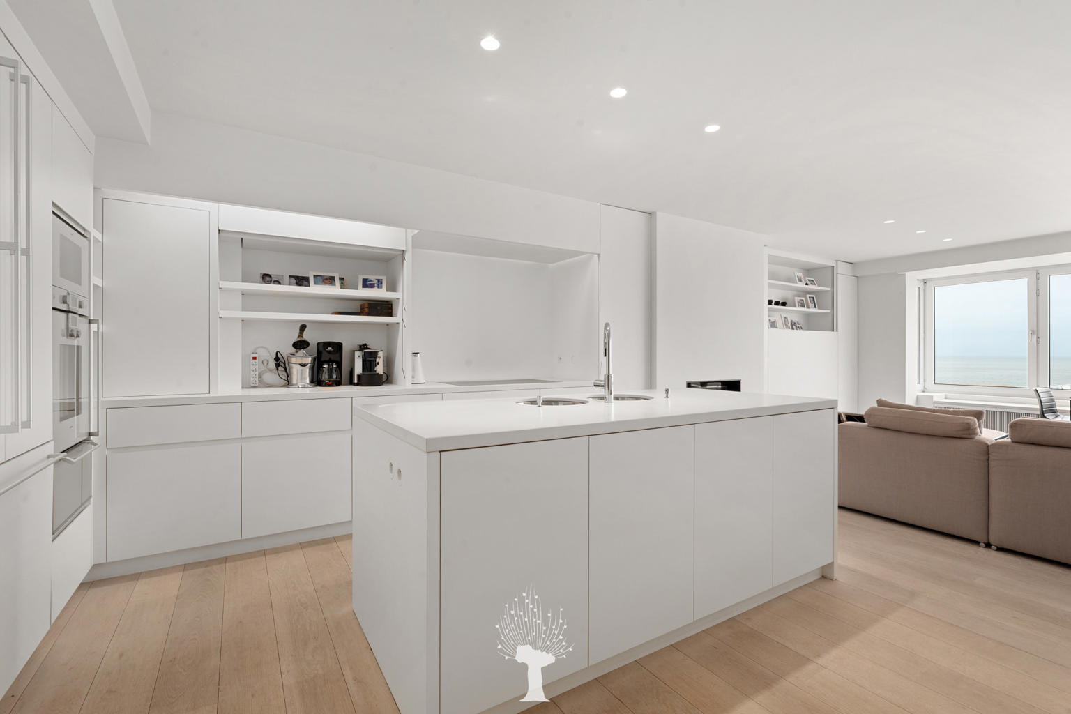 Smaakvol gerenoveerd appartement (7,5m gevelbreedte!) met uitzonderlijk zicht op Rubensplein, strand en zee. Samenstelling: inkom met vestiaire en toilet. Luxueuze open keuken met alle huishoudtoestellen (Gaggenau). Ruime woon - en eetplaats met wijds zeezicht. Master bedroom met ingemaakte kasten, badkamer en uitgevend op terras achteraan. 2 slaapkamers. 1 praktische douchekamer. Berging met aansluiting voor was- en droogkast. Kelder. Bezoek gaarne na afspraak via onze kantoren.