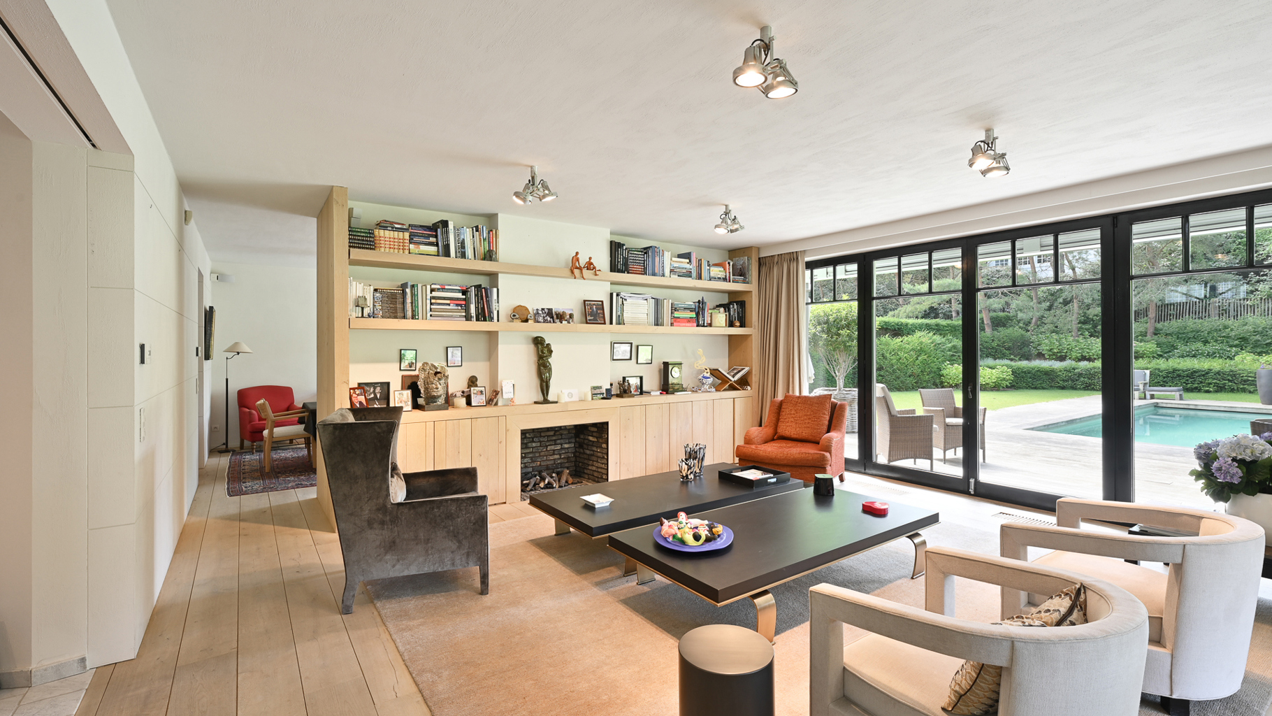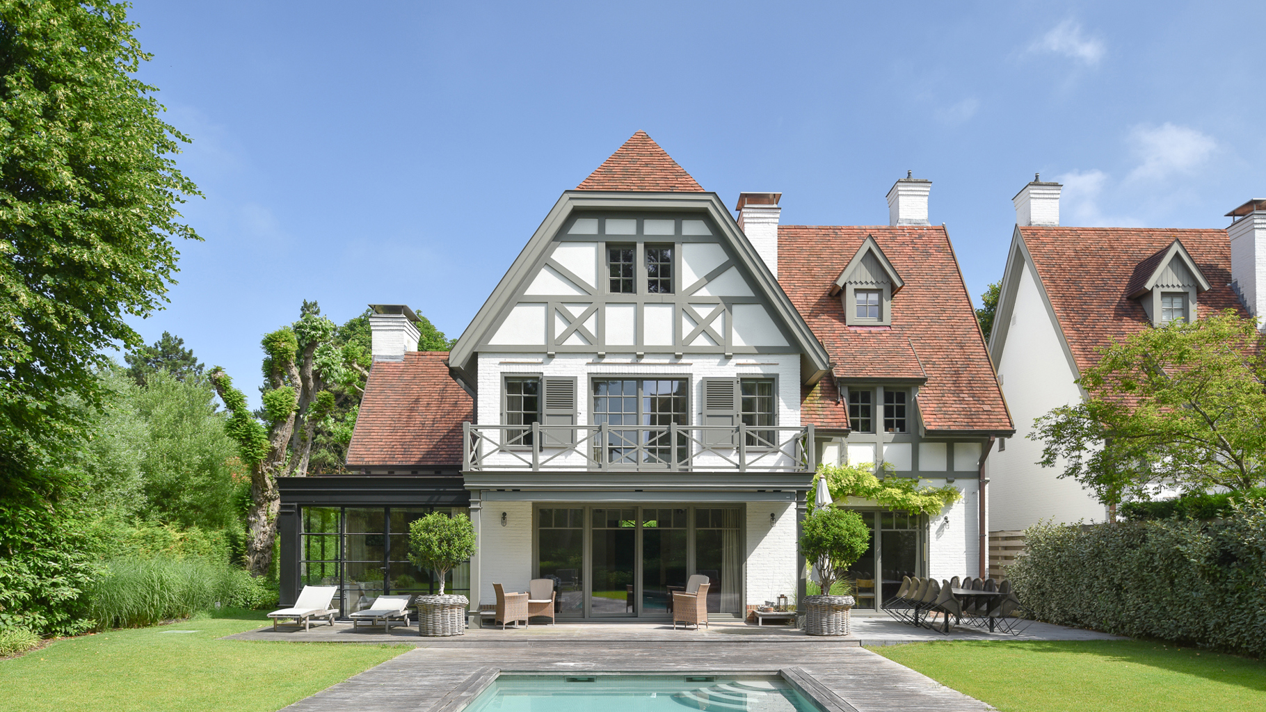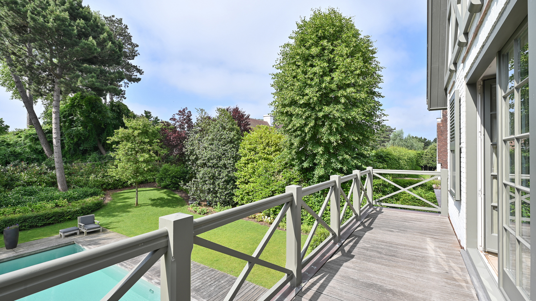 Klassevolle villa met prachtig aangelegde tuin en zwembad, rustig gelegen in een paadje hartje Zoute, op wandelafstand van de zee en de winkels. Indeling: inkom met vestiaire en wc. Lichtrijke leefruimte, uitgevend op zonnig terras en mooi aangelegde tuin met zwembad, bestaande uit een gezellig zitruimte met gashaard, tv- hoek, bureau met gashaard en eetplaats. Goed uitgeruste keuken met ontbijthoek. Op de eerste verdieping: master bedroom met terras, dressing en badkamer (bad, dubbele lavabo, douche, wc). 2de en 3de slaapkamer met tussenbeide praktische douchekamer. Studio/conciërgerie met aparte inkom via buitentrap, bestaande uit: vestiaire en wc. Woonkamer met open keuken. Douchekamer. Op de tweede verdieping: 2 ruime slaapkamers en 1 complete badkamer (bad, douche en dubbele lavabo). Apart toilet en technische ruimte. Inpandige dubbele garage en outdoor parking voor meerdere wagens. De villa is volledig onderkelderd en bestaande uit: vergaderzaal, polyvalente ruimte, technische ruimte, grote wasplaats en berging. Hoogwaardige afwerking, genesteld in het groen. Bezoek gaarne na afspraak in één van onze kantoren.