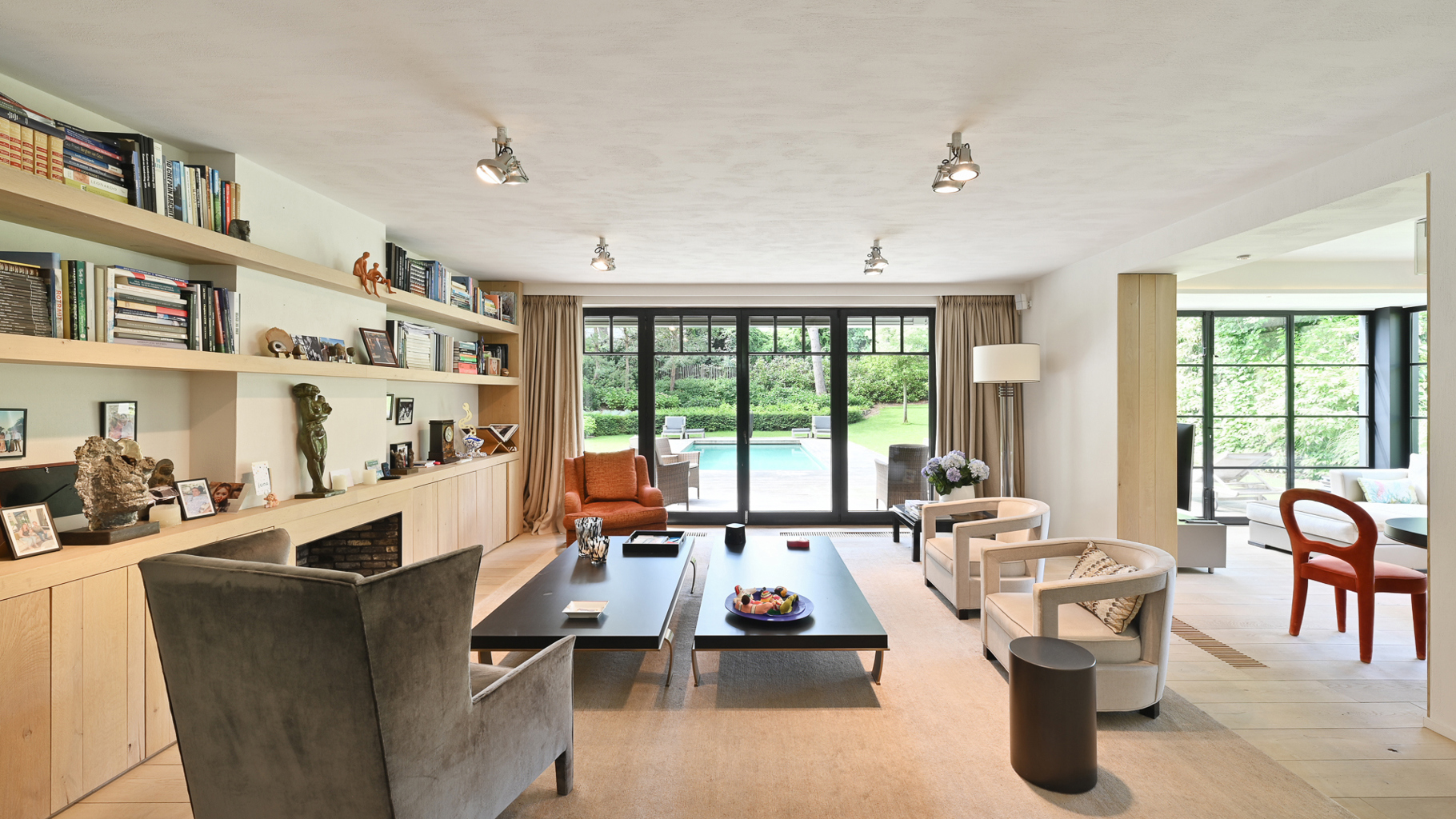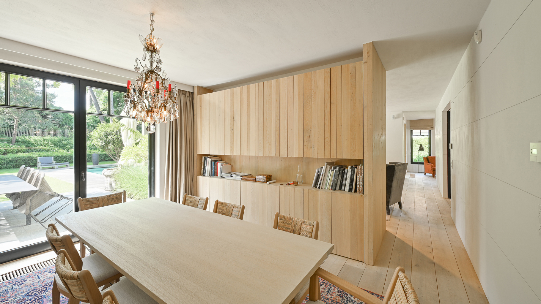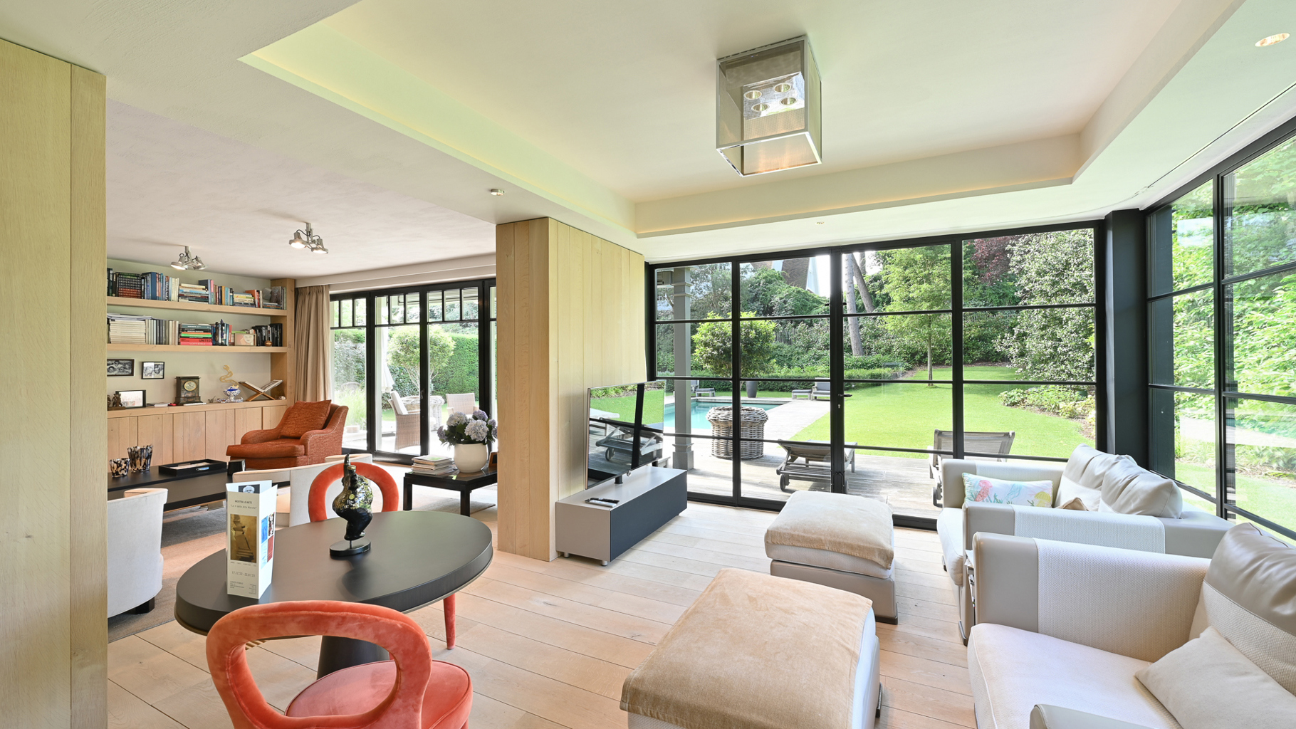 Klassevolle villa met prachtig aangelegde tuin en zwembad, rustig gelegen in een paadje hartje Zoute, op wandelafstand van de zee en de winkels. Indeling: inkom met vestiaire en wc. Lichtrijke leefruimte, uitgevend op zonnig terras en mooi aangelegde tuin met zwembad, bestaande uit een gezellig zitruimte met gashaard, tv- hoek, bureau met gashaard en eetplaats. Goed uitgeruste keuken met ontbijthoek. Op de eerste verdieping: master bedroom met terras, dressing en badkamer (bad, dubbele lavabo, douche, wc). 2de en 3de slaapkamer met tussenbeide praktische douchekamer. Studio/conciërgerie met aparte inkom via buitentrap, bestaande uit: vestiaire en wc. Woonkamer met open keuken. Douchekamer. Op de tweede verdieping: 2 ruime slaapkamers en 1 complete badkamer (bad, douche en dubbele lavabo). Apart toilet en technische ruimte. Inpandige dubbele garage en outdoor parking voor meerdere wagens. De villa is volledig onderkelderd en bestaande uit: vergaderzaal, polyvalente ruimte, technische ruimte, grote wasplaats en berging. Hoogwaardige afwerking, genesteld in het groen. Bezoek gaarne na afspraak in één van onze kantoren.