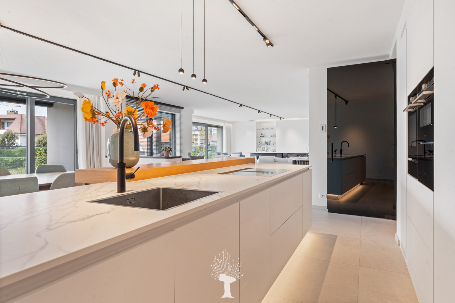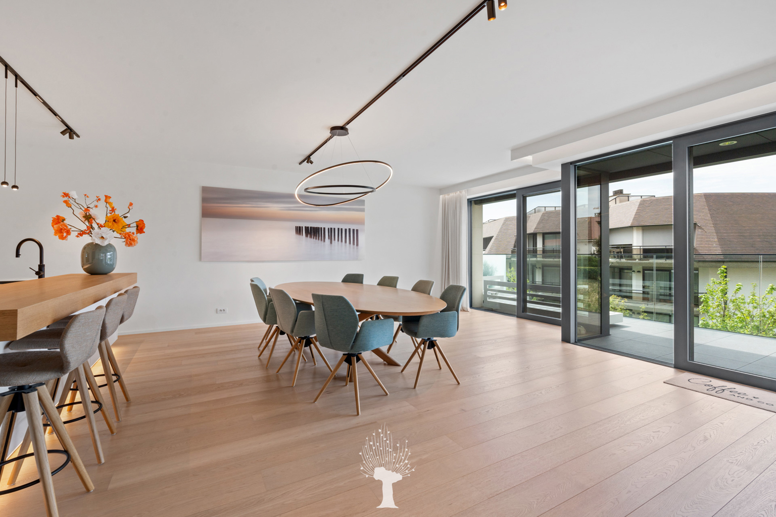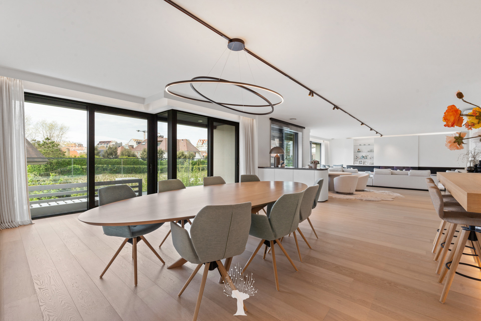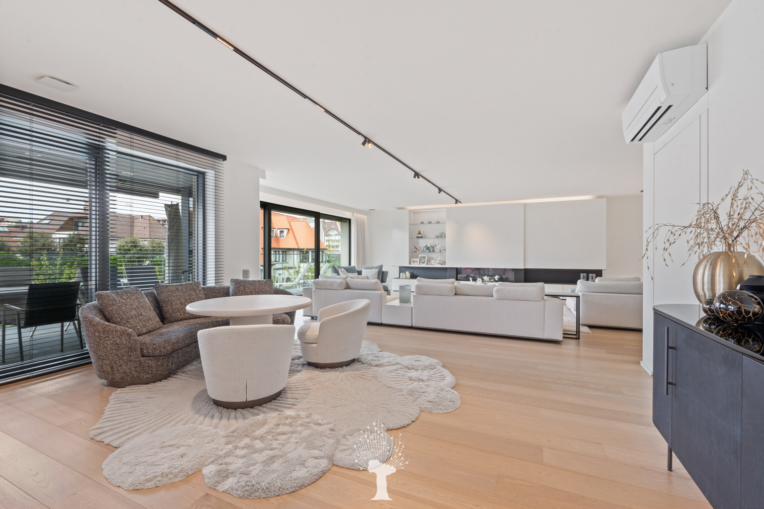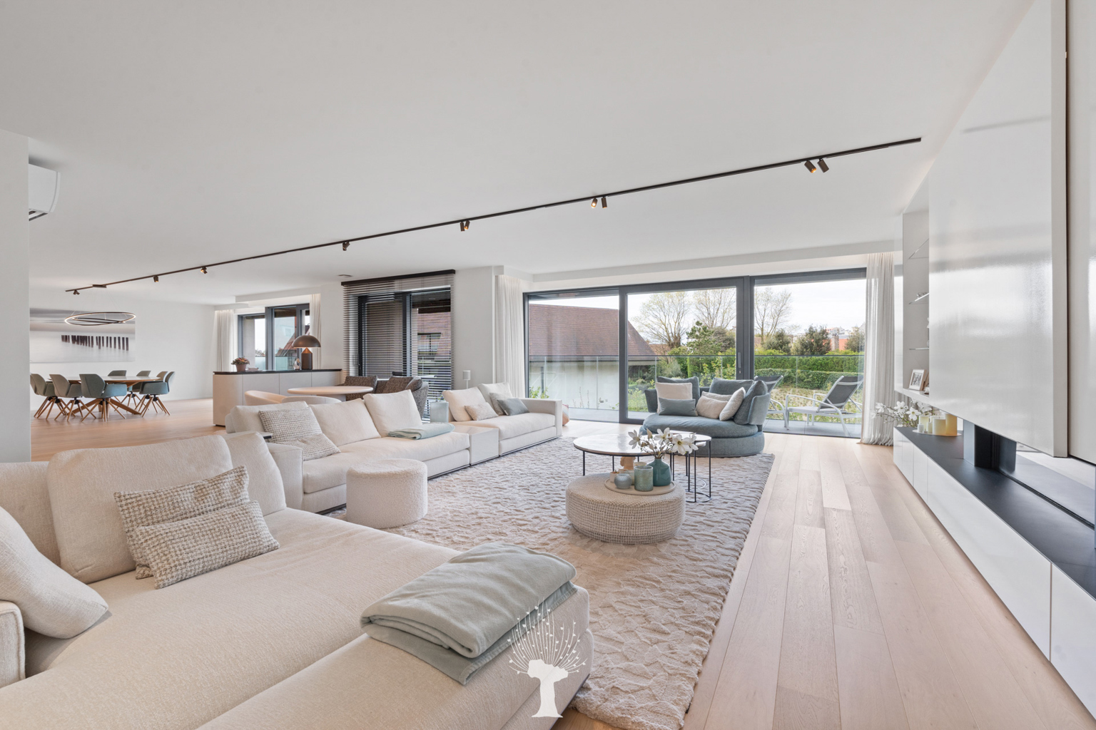 Prestigieus uitzonderlijk ruim nieuwbouwappartement (2022), met een oppervlakte van 302m² en grote terrassen, gelegen in de standingvolle Residentie “La Rive” met zijdelings zicht op het Zegemeer, het Casino en het Albertstrand op wandelafstand. Indeling: inkomhal en dienstingang met wc. Zeer ruime, lichtrijke woonkamer (gevelbreedte van 16,5m) uitgevend op zonnige terrassen (West en Zuid) met lateraal zicht op het Zegemeer, gezellige gashaard en infrarood sauna. Volledig uitgeruste open Siematic keuken. 3 volwaardige slaapkamers uitgevend op terras (slaapgelegenheid voor 10 personen, mogelijkheid tot creatie van een 4de slaapkamer), dressing, 2 badkamers. Praktische berging/wasplaats. Heel luxueuze afwerking en voorzien van alle moderne comfort: airco, alarm, domotica, zonneluifels, ... Dubbele privatieve berging op -1. Gemeenschappelijke fietsenberging. Mogelijkheid tot aankoop gesloten garagebox voor 4 wagens met laadpaal. Bezoek na afspraak op één van onze kantoren.