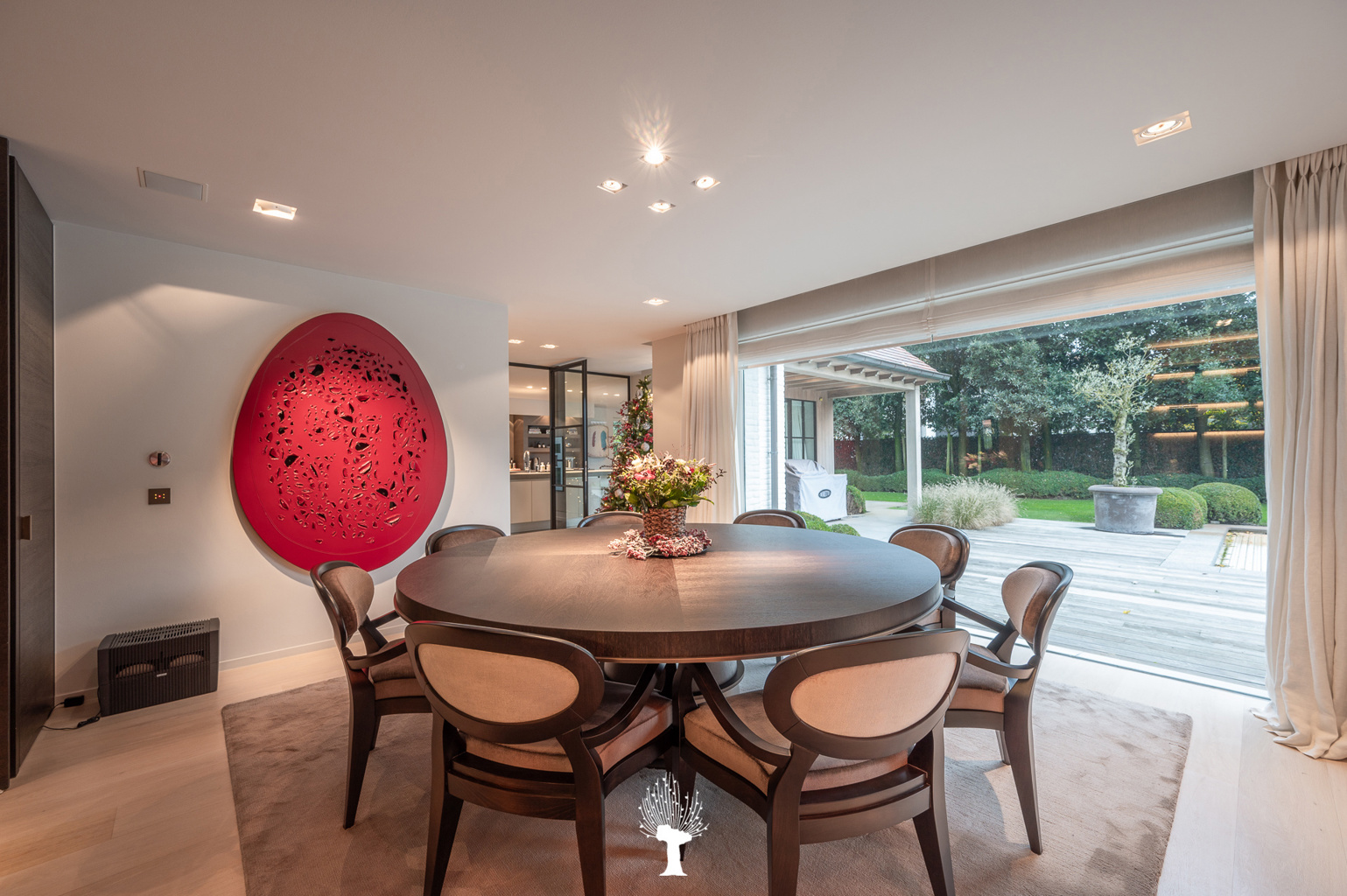 Prachtige eigendom met zwembad gelegen op slechts enkele passen van het Dominikanenkerkje, hartje Zoute. Het strand ligt eveneens op wandelafstand. Indeling: inkomhall met vestiaire en gastentoilet. Bureel met ingemaakte kasten en zicht op de tuin. Ruime woonkamer met gashaard. 2de living. Lichtrijke eetkamer grenzend aan de royaal ingerichte keuken met grote wijnklimaatkast. Praktische bijkeuken/wasplaats. Dubbele garage en technische ruimte. Op de verdieping: grote nachthal met zitruimte. Hoofdslaapkamer met grote badkamer voorzien van vloerverwarming (bad, grote inloopdouche, lavabo). Apart wc. Bijhorende dressing. 2e slaapkamer/ bureau met luik naar kleine zolder. Toilet. 3de volwaardige slaapkamer met ingemaakte kasten en eigen douchekamer. 4e volwaardige slaapkamer met groot zongericht terras, bureel, ingemaakte kasten en eigen douchekamer met wc. Zonnige aangelegde tuin met zwembad en Jacuzzi. Pool house met hammam, douche en apart toilet. Parkeergelegenheid voor minimum 4 wagens. Automatische poort. Bezoek graag na afspraak via één van onze kantoren.